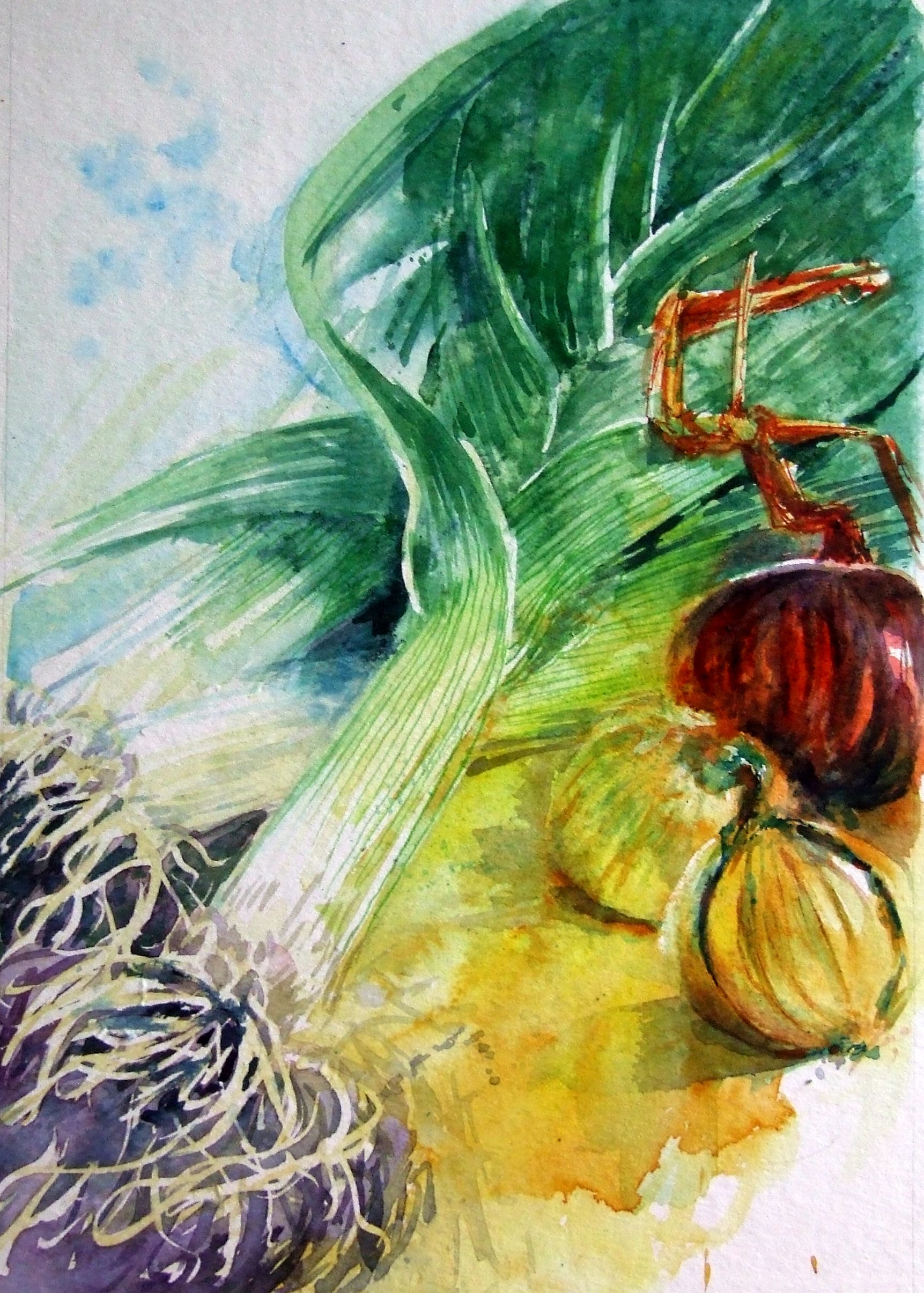 Prei Groente Aquarel Illustratie Figuratief Stilleven