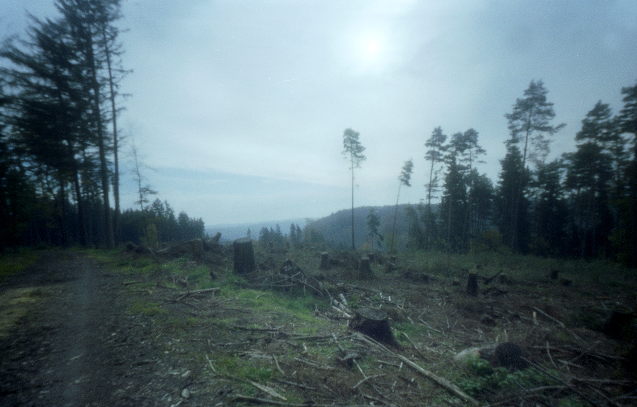 Pinhole foto, gemaakt met een kartonnen doosje, op kleinbeeld negatief. Belichtingstijd 3 seconden.