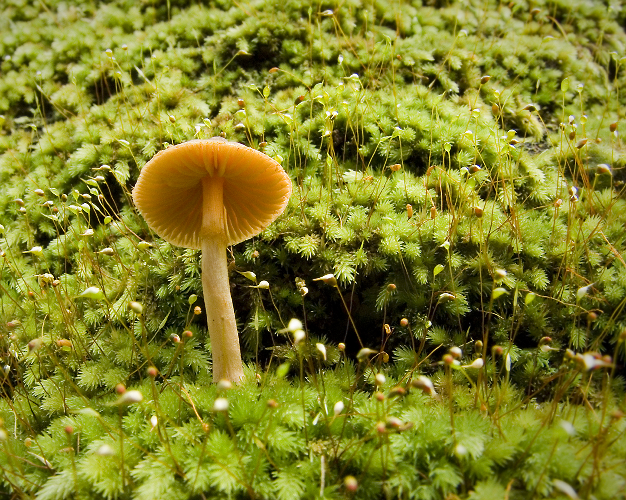 Solitary Single Mushroom Moss