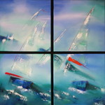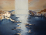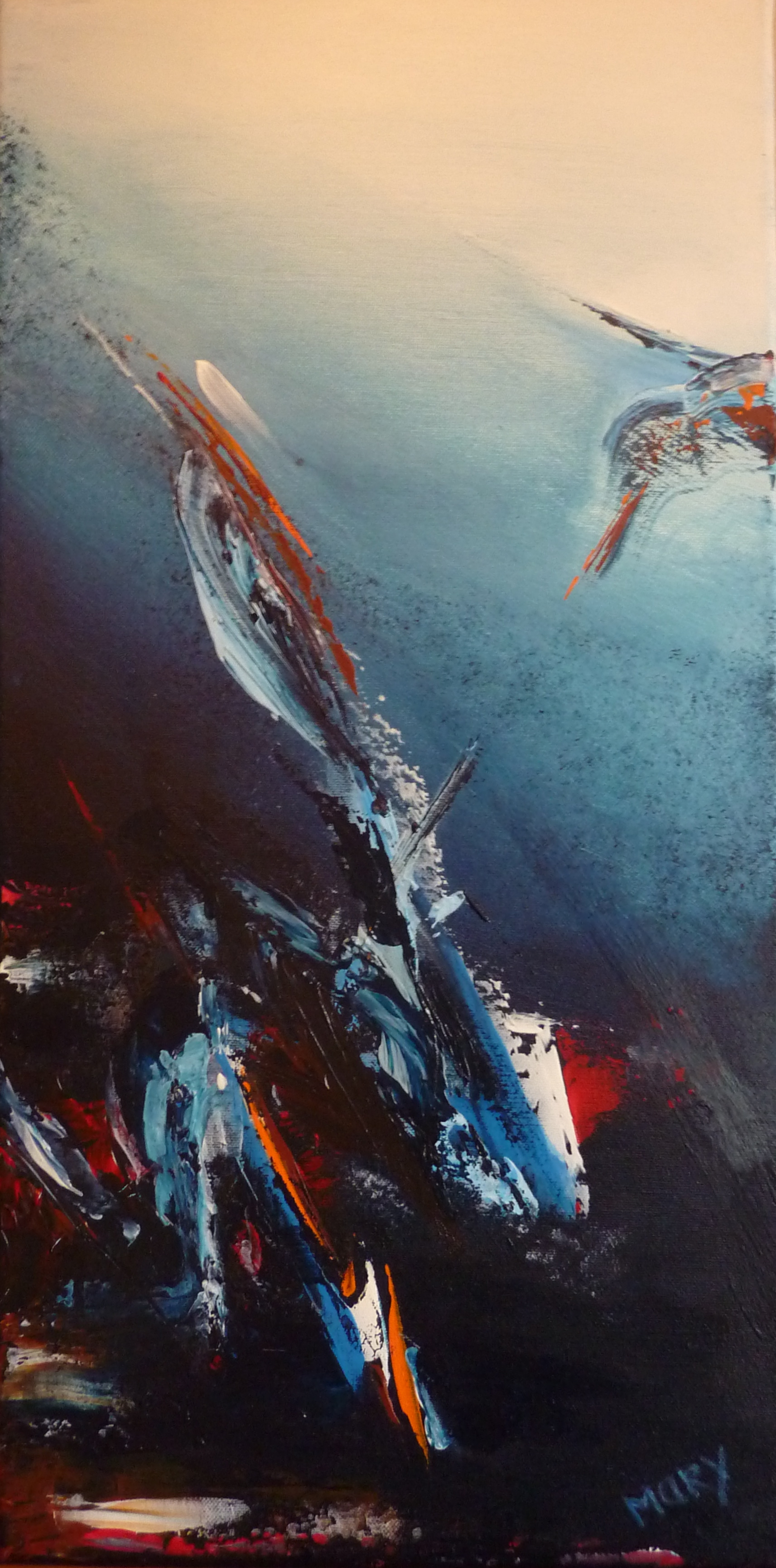 IJsvogel is een acrylverf schilderij op bespannen doek Het werk laat een ijsvogel zien die in het water duikt.