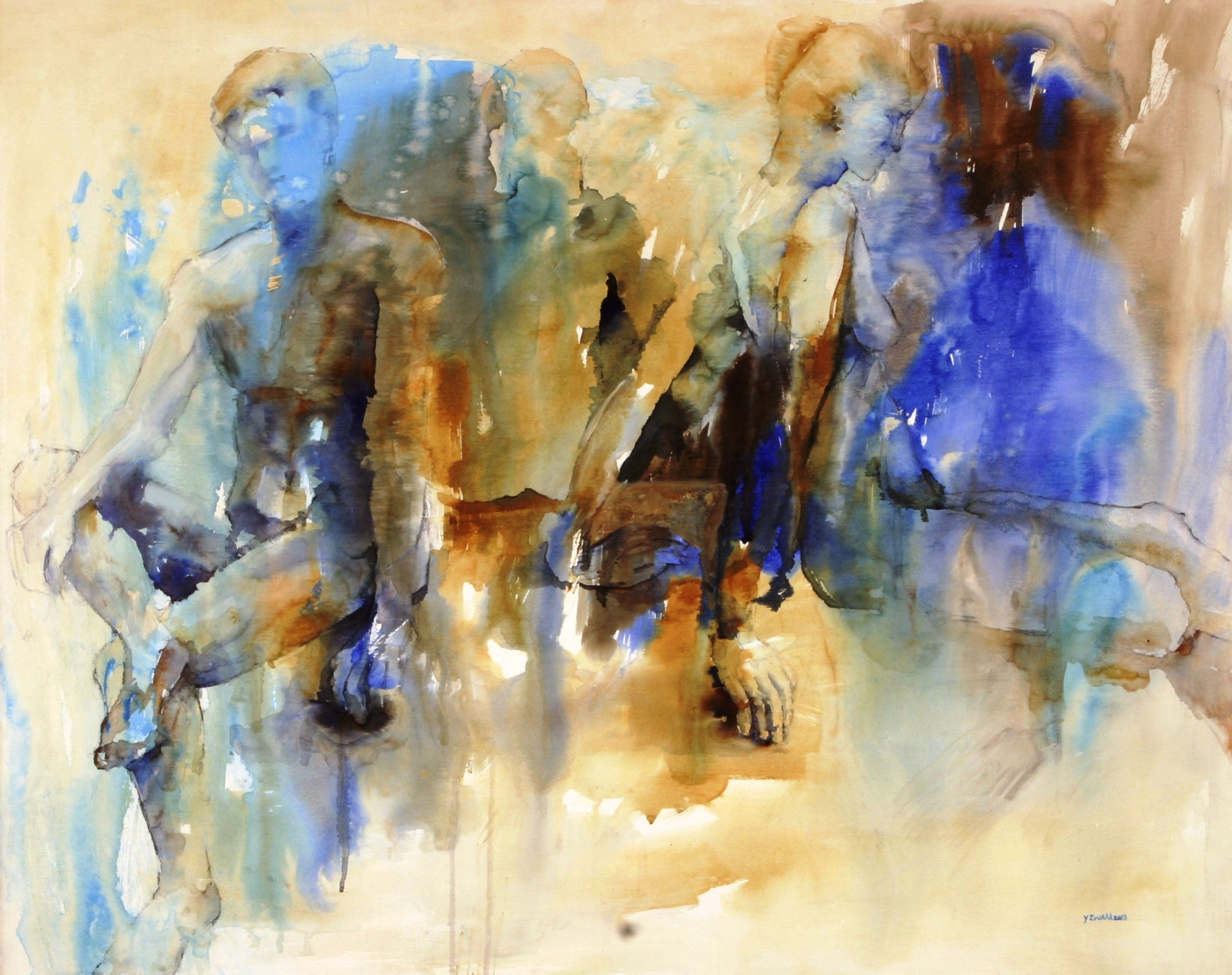 Drie Modellen Aquarel Figuratief Blauw