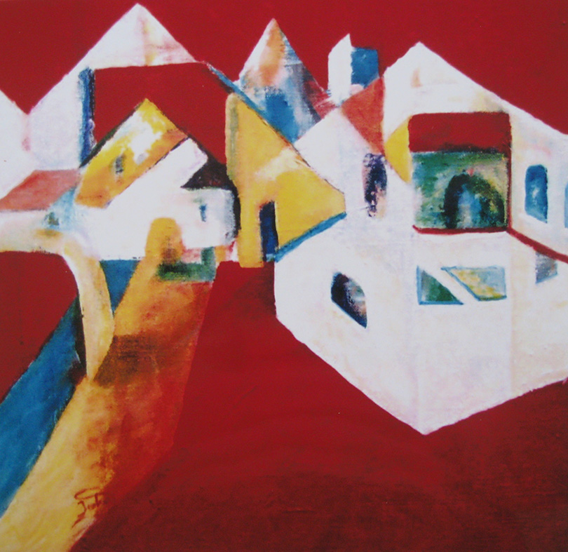 Je vindt: een kleurrijke droomwereld, Zuid-Europees licht, architectonische vormen, zeilend voor de wind. Alles los en vrolijk 'gemodelleerd'.