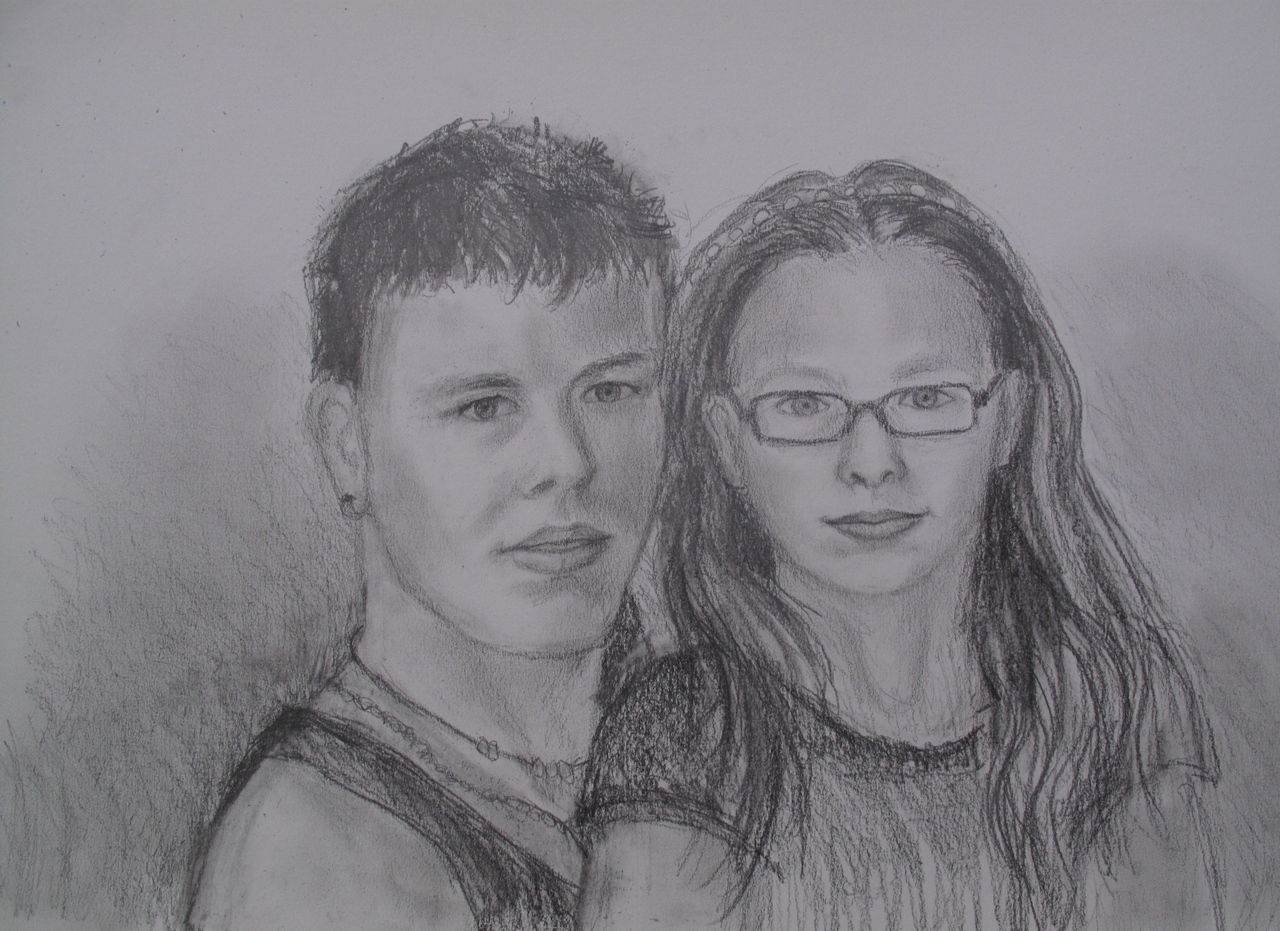 Schilderij Portret Papier Familie Tekening En Broer Zus Opdracht Verf Grafietstift