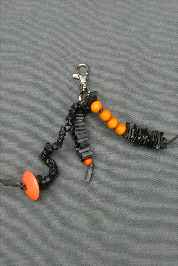 sleutelhanger,rubber met oranje kralen