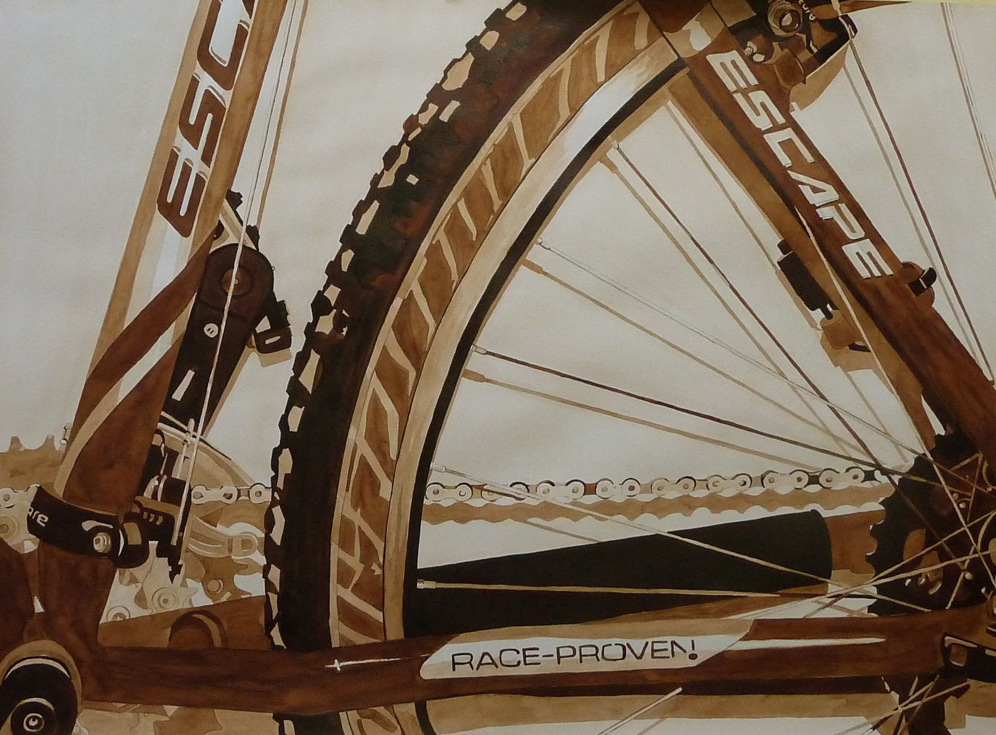 Onderdeel van mountainbike in bruine bister.