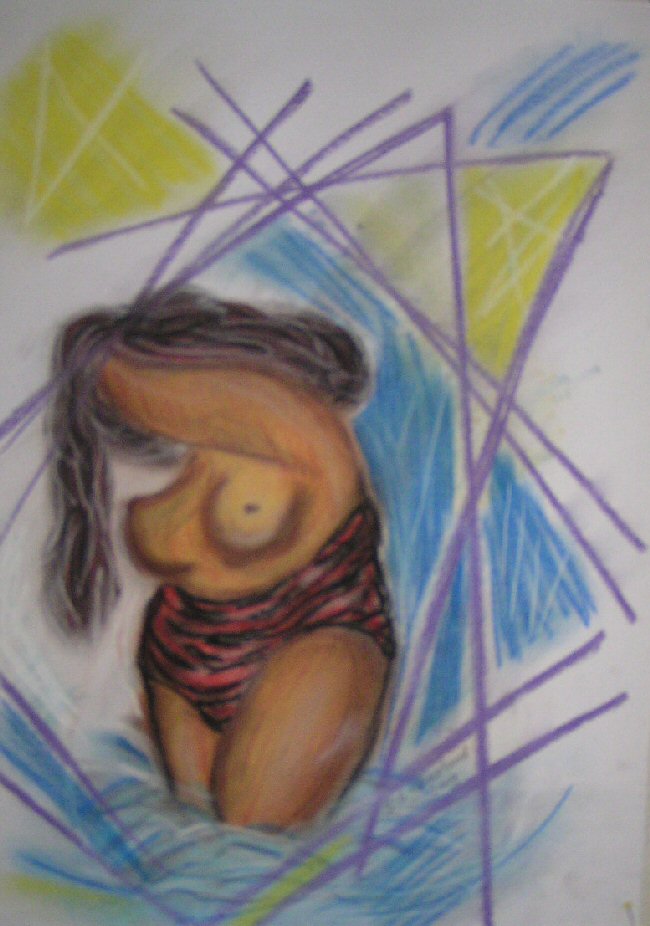 Mooie dame die durft! Ze is wie zij is, mooi en gelovend in haarzelf, en daarom durft zij zichzelf te tonen. Puur softpastel. Nog zonder passepartout of lijst, naar eigen smaak in te vullen A3 formaat