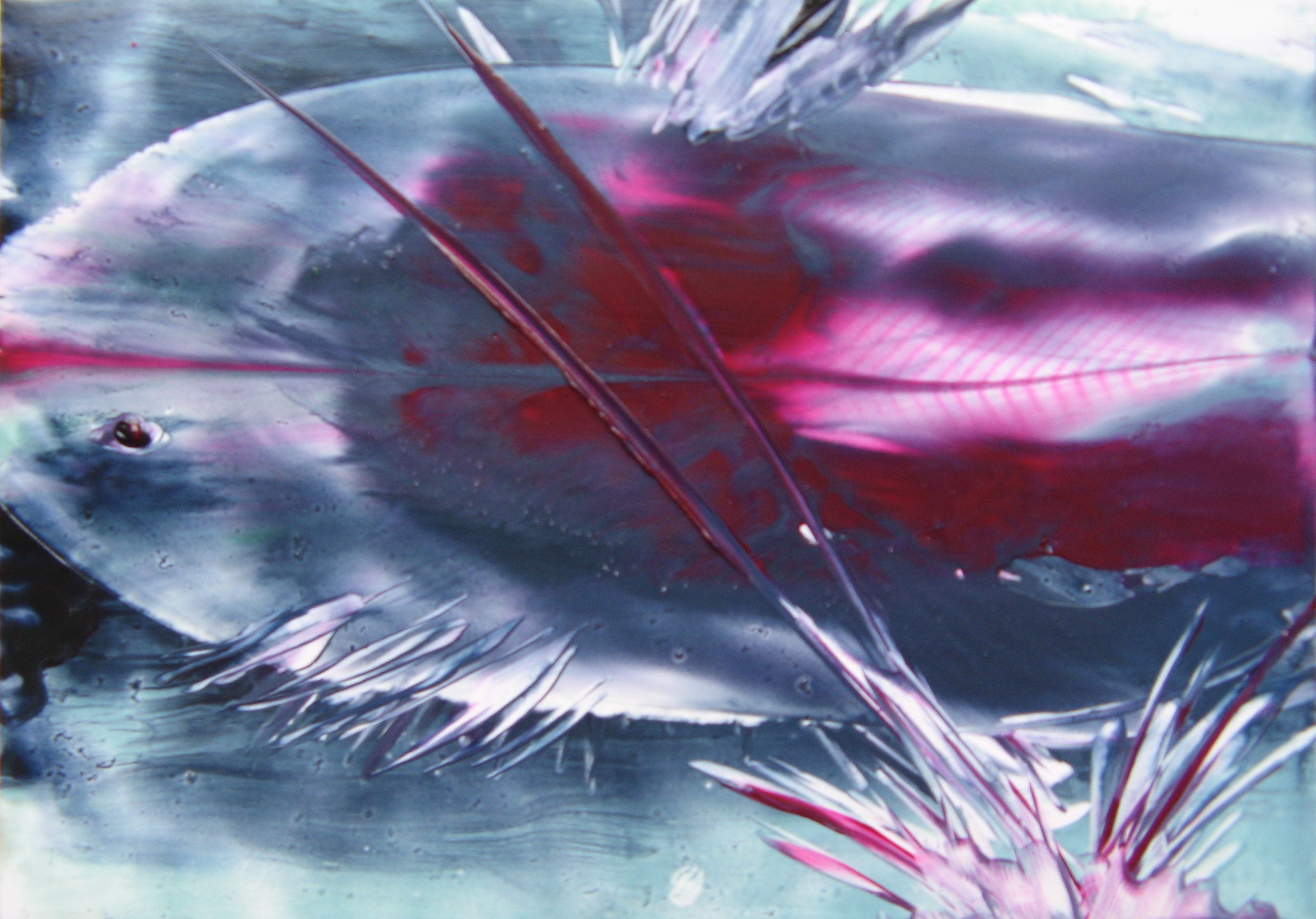 Encaustic Art Bijenwas Zwart Blauw Paars Groen Vis Zee Water