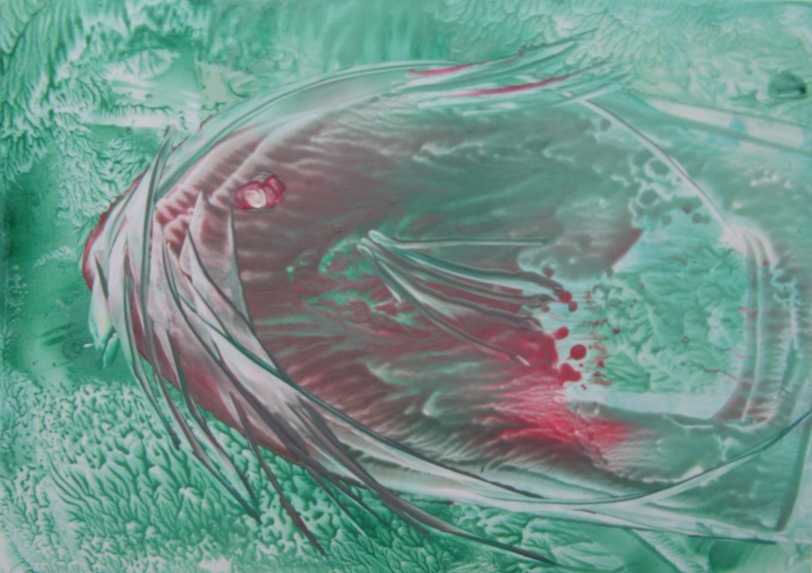 Encaustic Art Bijenwas Groen Roze Paars Vis Zee Water