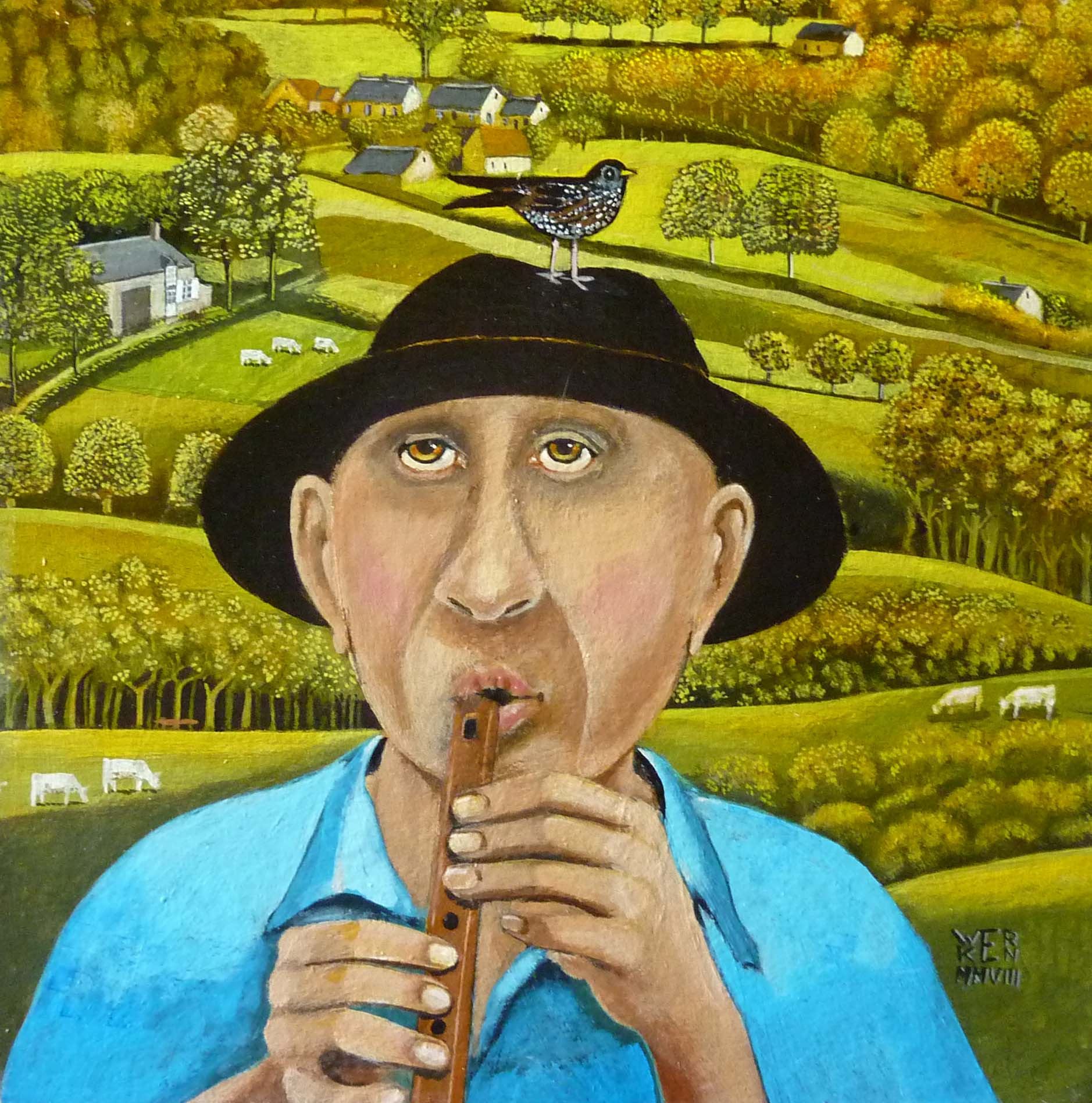 Figuratief Landschap Vogel Hoed Fluit Naief