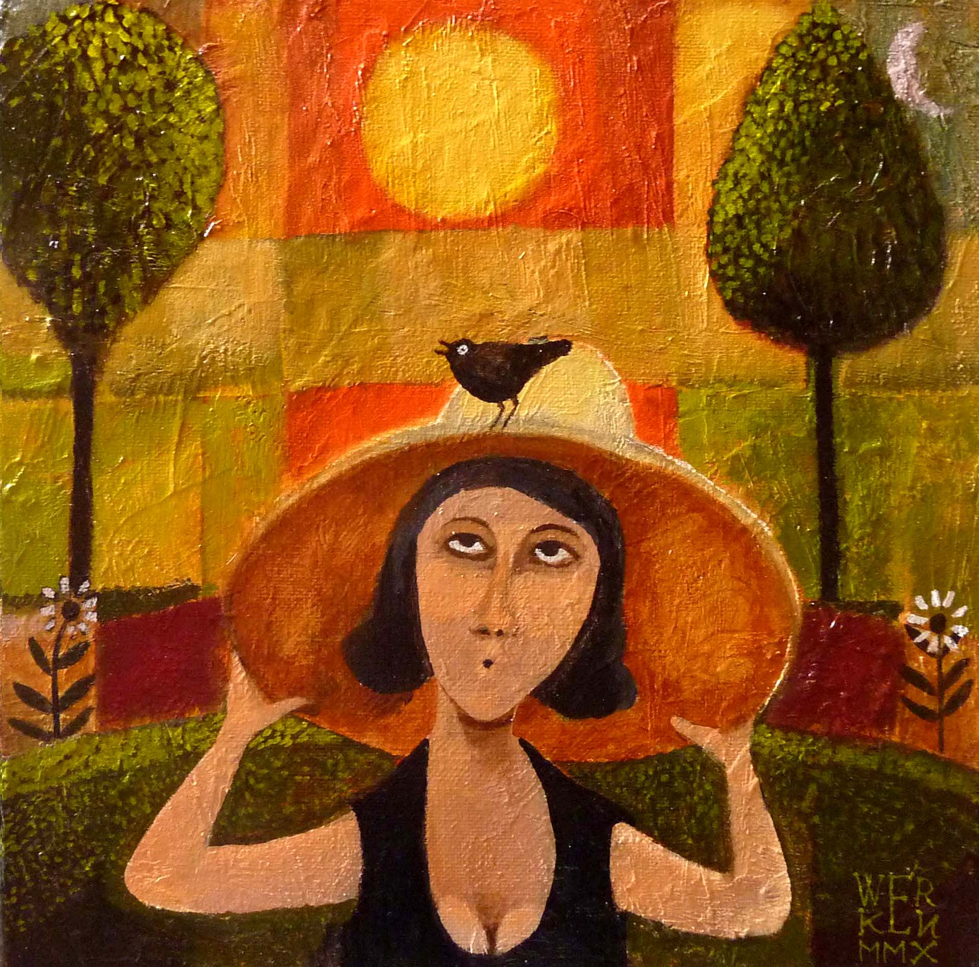 Vogel Vrouw Kleurrijk Figuur Naief Zomeravond