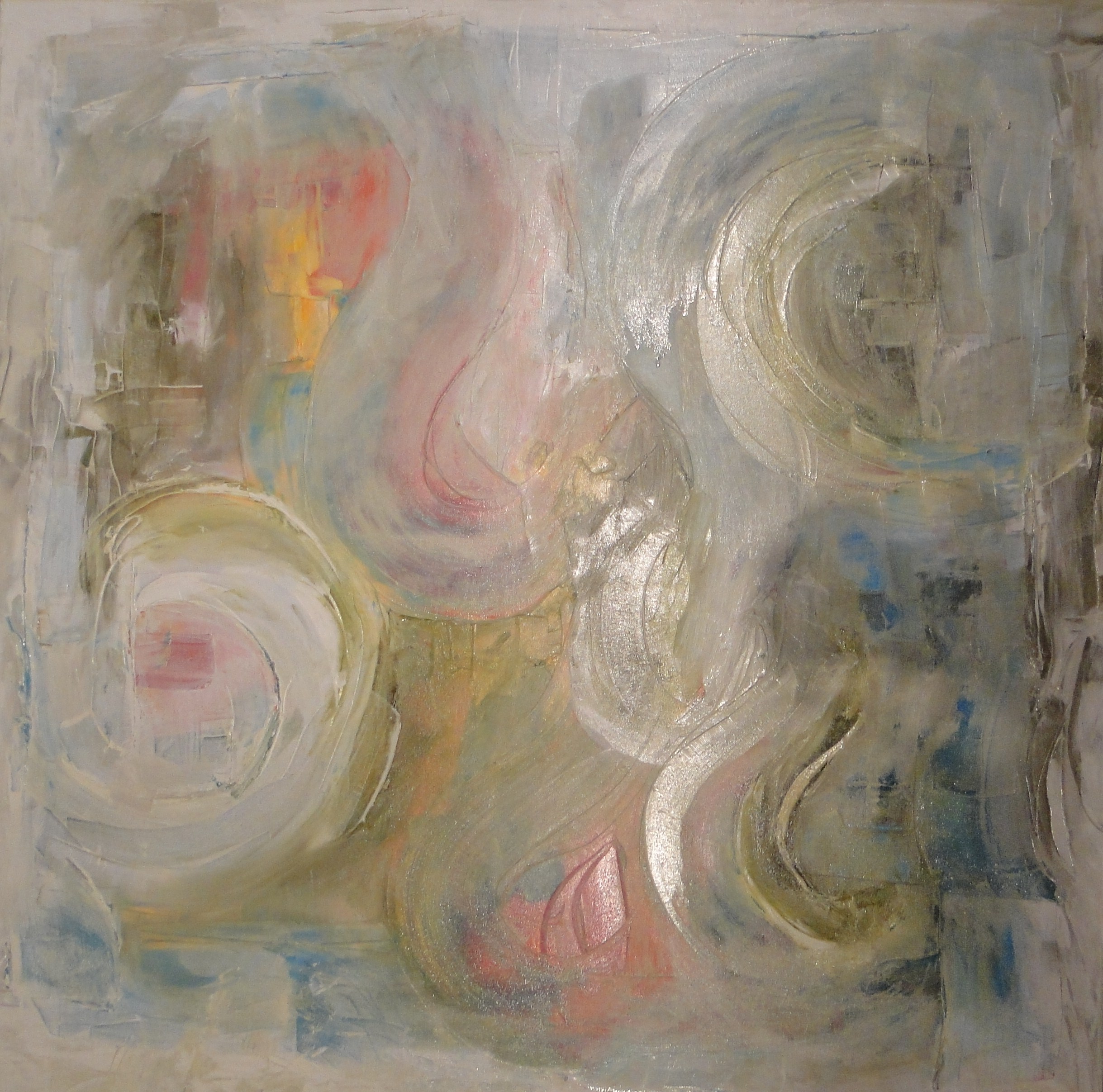 Oil Canvas Thick Paint Palette Knife Contemporary Modern Soft Colours Feminine Light Abstract