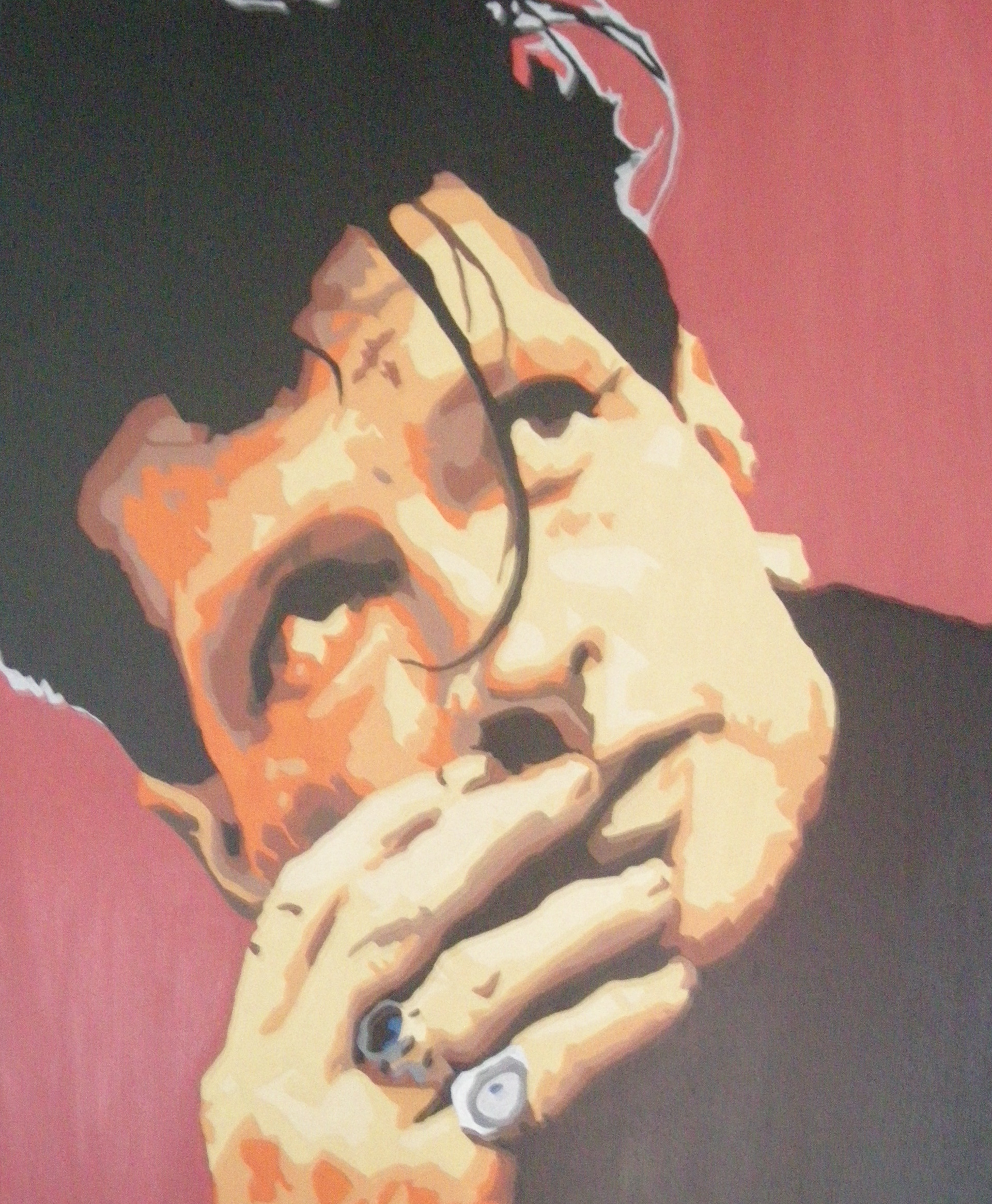 In mijn vrije tijd maak ik schilderijen en muurschilderingen van sporters, muzikanten en andere opvallende figuren in de maatschappij in de stijl van stencil-art.