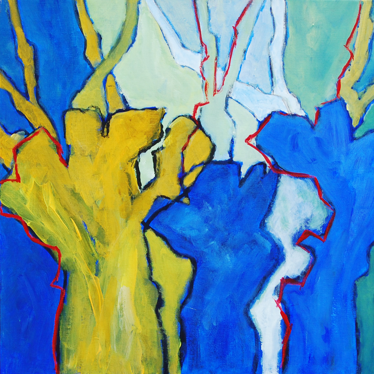 Knotwilgen neergezet in vlakken- en lijnenspel. Nu te bezichtigen bij Galerie Storm, Amsterdam.