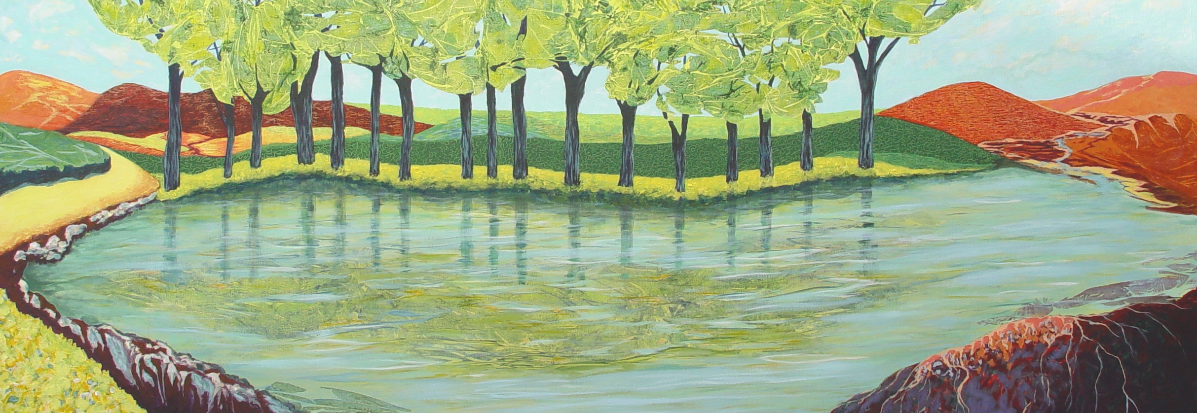 de bomen weerspiegelen in het water (dit werk is uitgeleend)