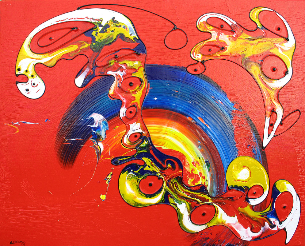 Modern kleurrijk schilderij van kunstenaar Erik Loman. Acryl op linnen, 80x100cm, 2009.