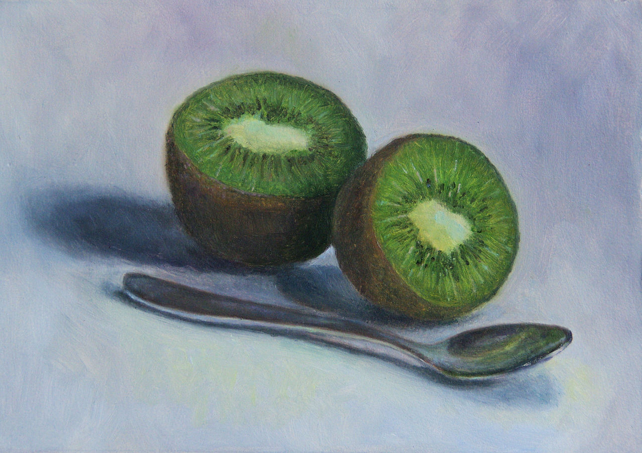 Stilleven van kiwi met lepeltje, 15x20 cm.