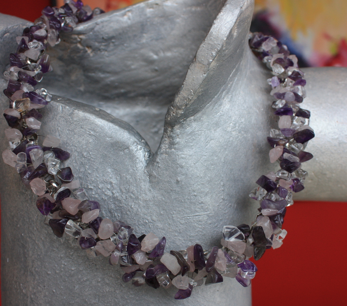 Jasseron met amethist,bergkristal en rozenkwarts natuursteentjes