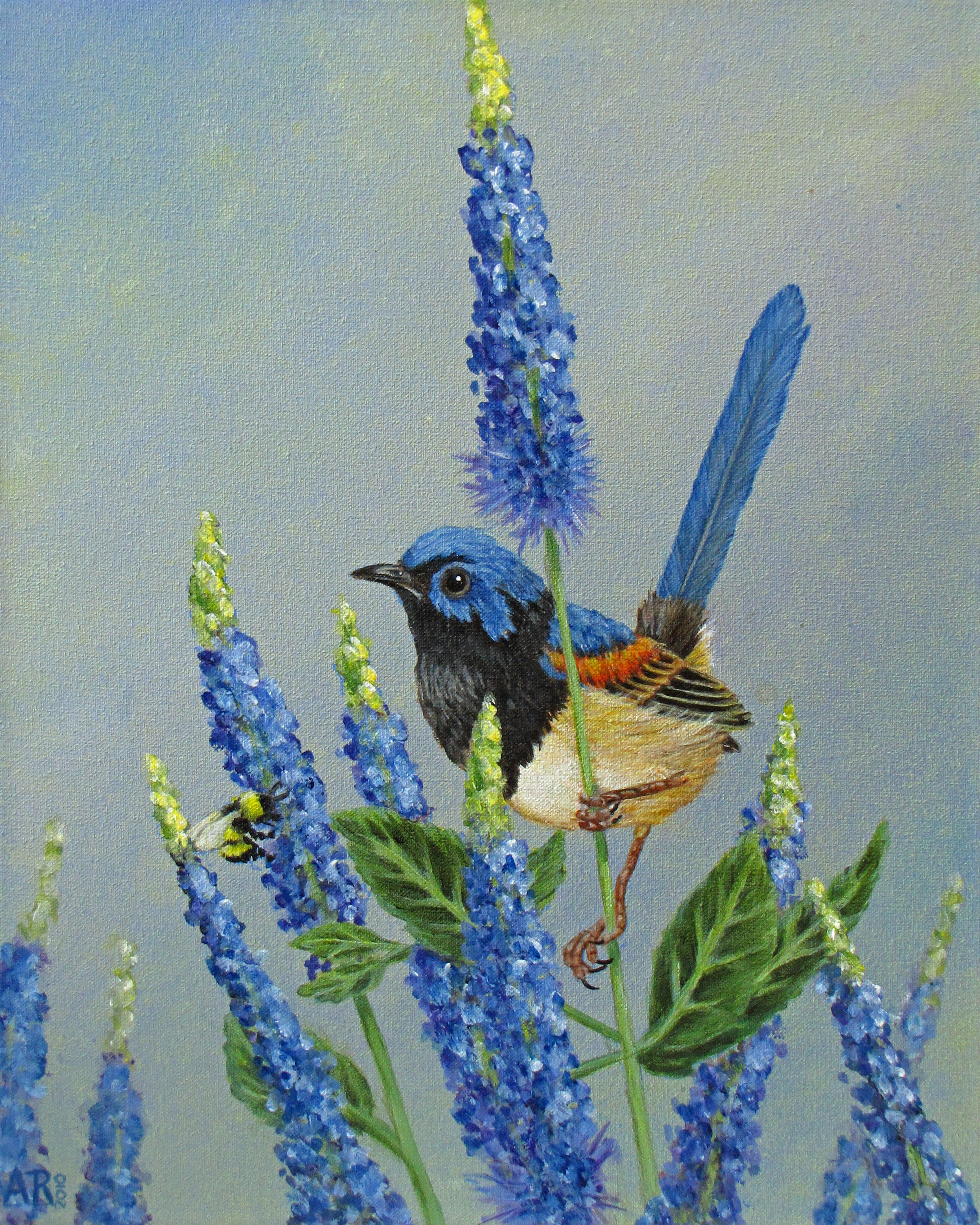 Schilderij Blauw Acryl Vogel Wildlife Art Dier Bird Animal Winterkoninkje Wren