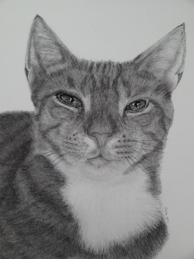 Mijn eerste opdracht, poes Juul, naar een foto van de opdrachtgever.