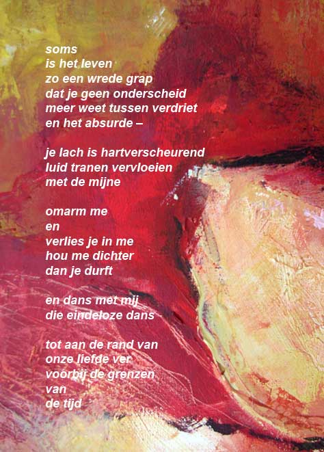 Gedicht. Achtergrond is een deel van een van mijn schilderwerken.