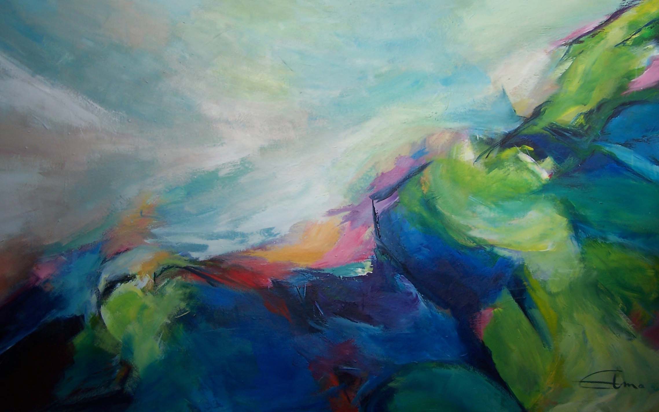Abstract Blauw Acryl Groen Eigenzinnig Beslist