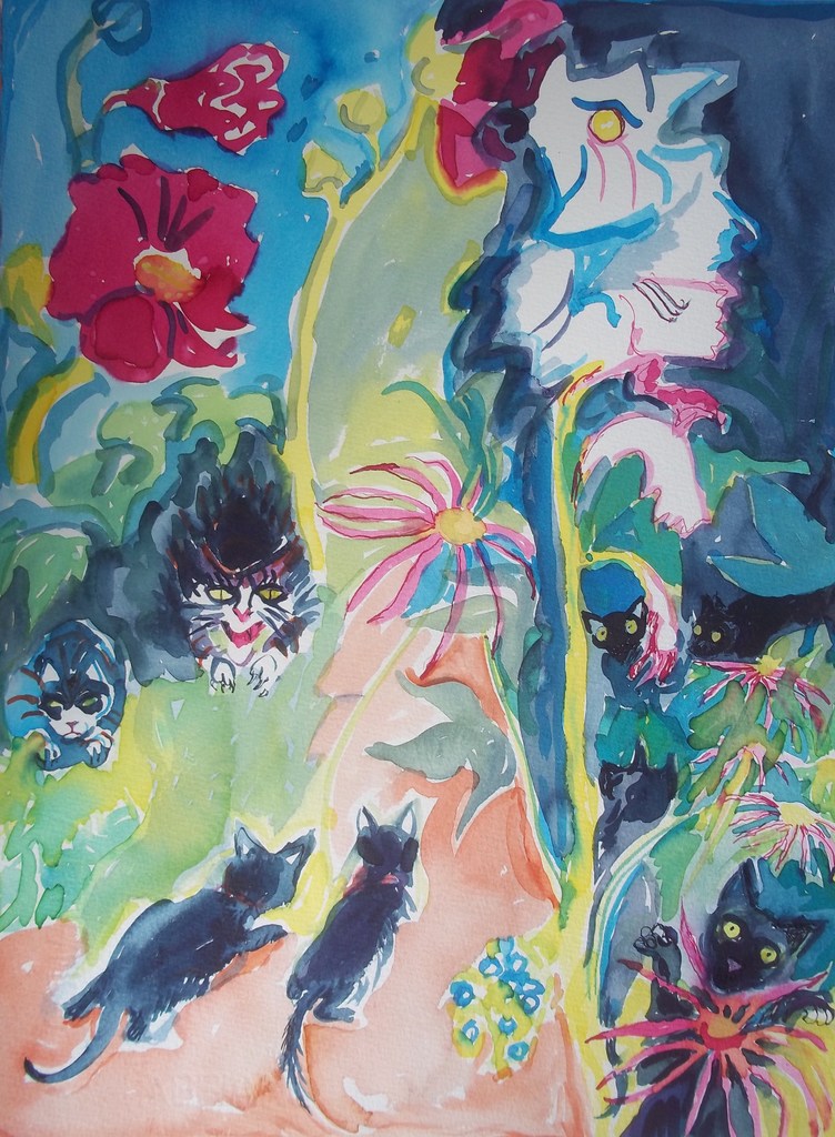 de kleine kittens zijn bang voor de akelige buurpoesjes