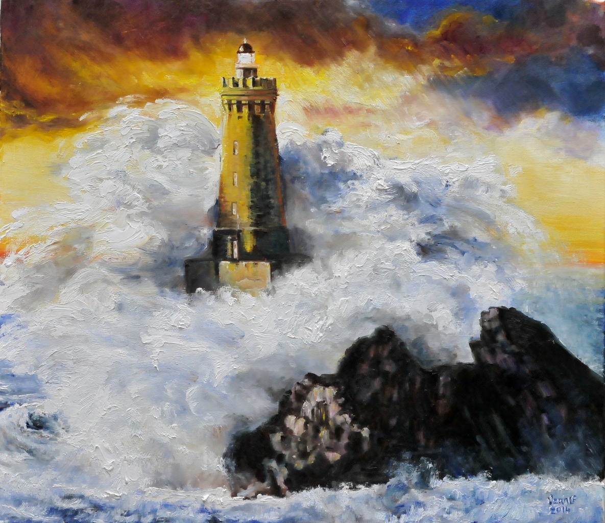 Zee Landschap Zonsondergang Water Frankrijk Golf Haven Marine Storm Zeezicht Golven Vuurtoren Branding