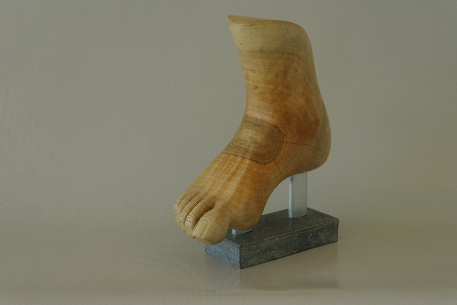 Uit notenhout vervaardigde voeten,op hardstenen sokkel,bewerkt met danisch oil.