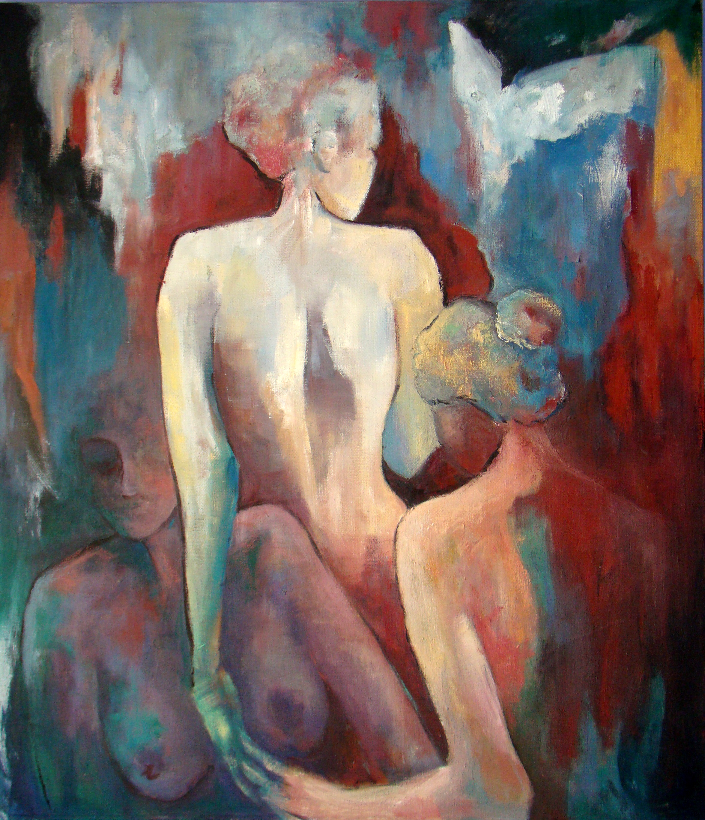 Vrouwen Rood Paars Doek Vriendschap Intimiteit Alkyd