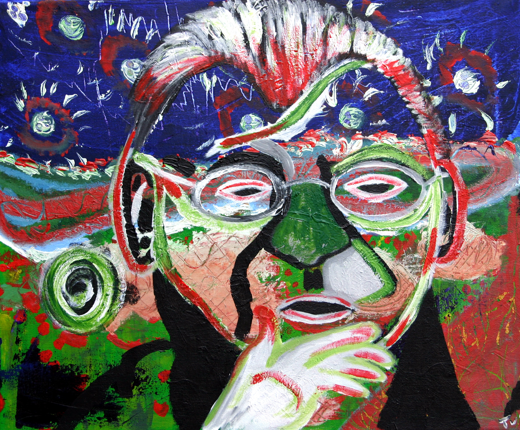Wit Rood Blauw Groen Portret Blue Kop Red Karel Appel Green White