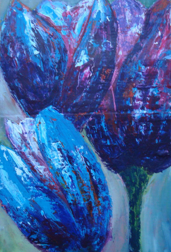Natuur Tulpen Tulp Bollen Blauw Acryl Paletmes Schildermes Abstraherend Kunst