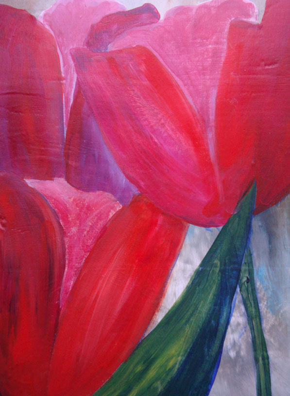 Natuur Tulpen Tulp Bollen Rood Roze Acryl Paletmes Schildersmes Abstraherend Kunst