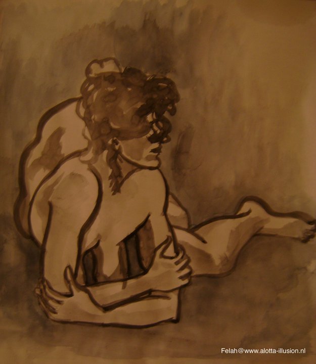 Vrouw Naakt Model Woman Tekening Inkt Naked Ink