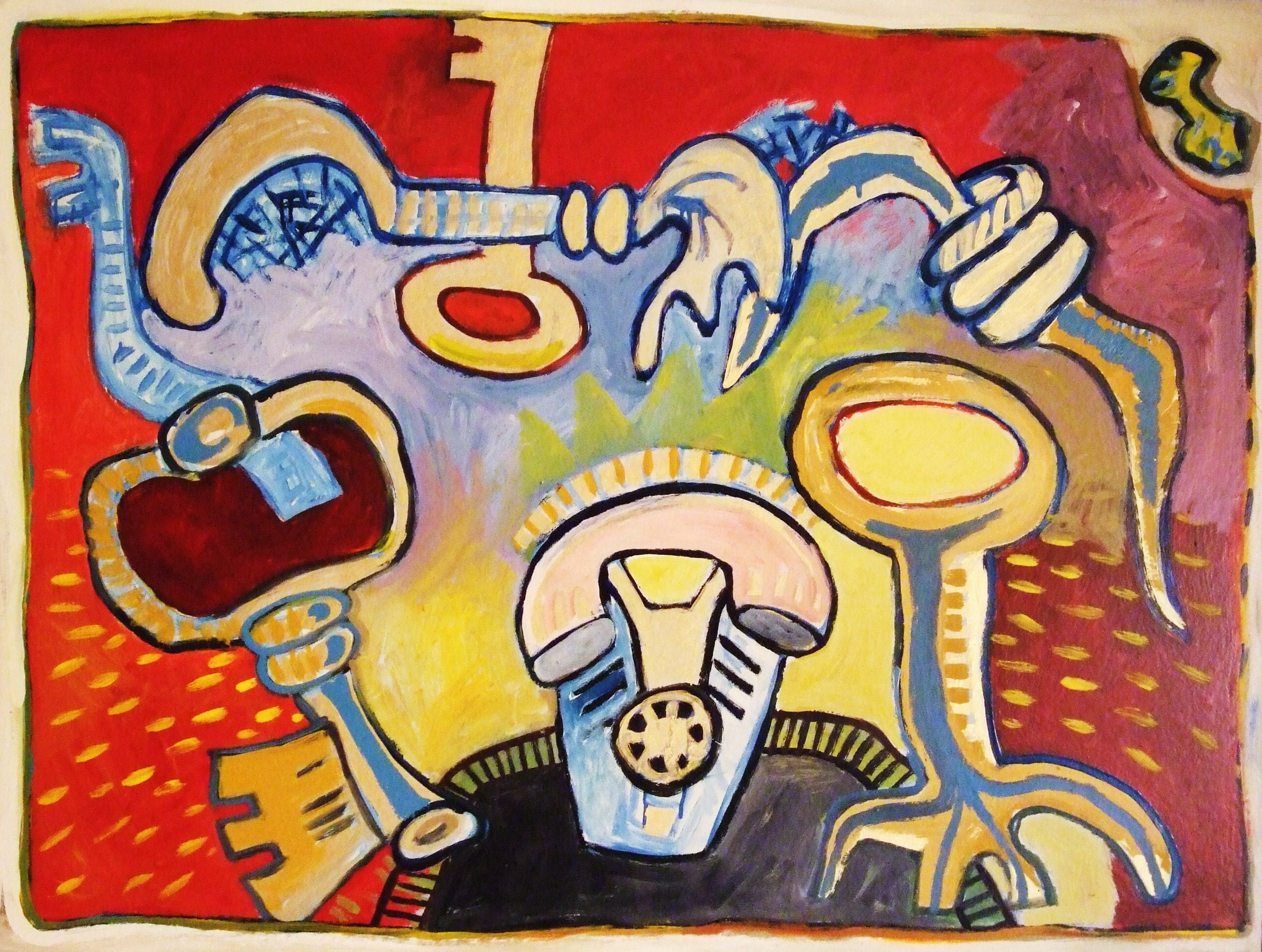 Alkydverf op board. Herinnering aan het genre "Stilleven" geheel naar de verbeelding.