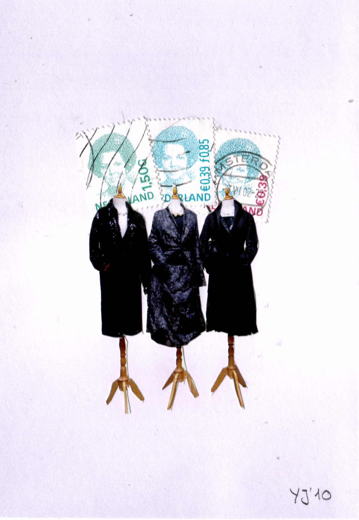Verzamelingen. Collage van papier en postzegels.