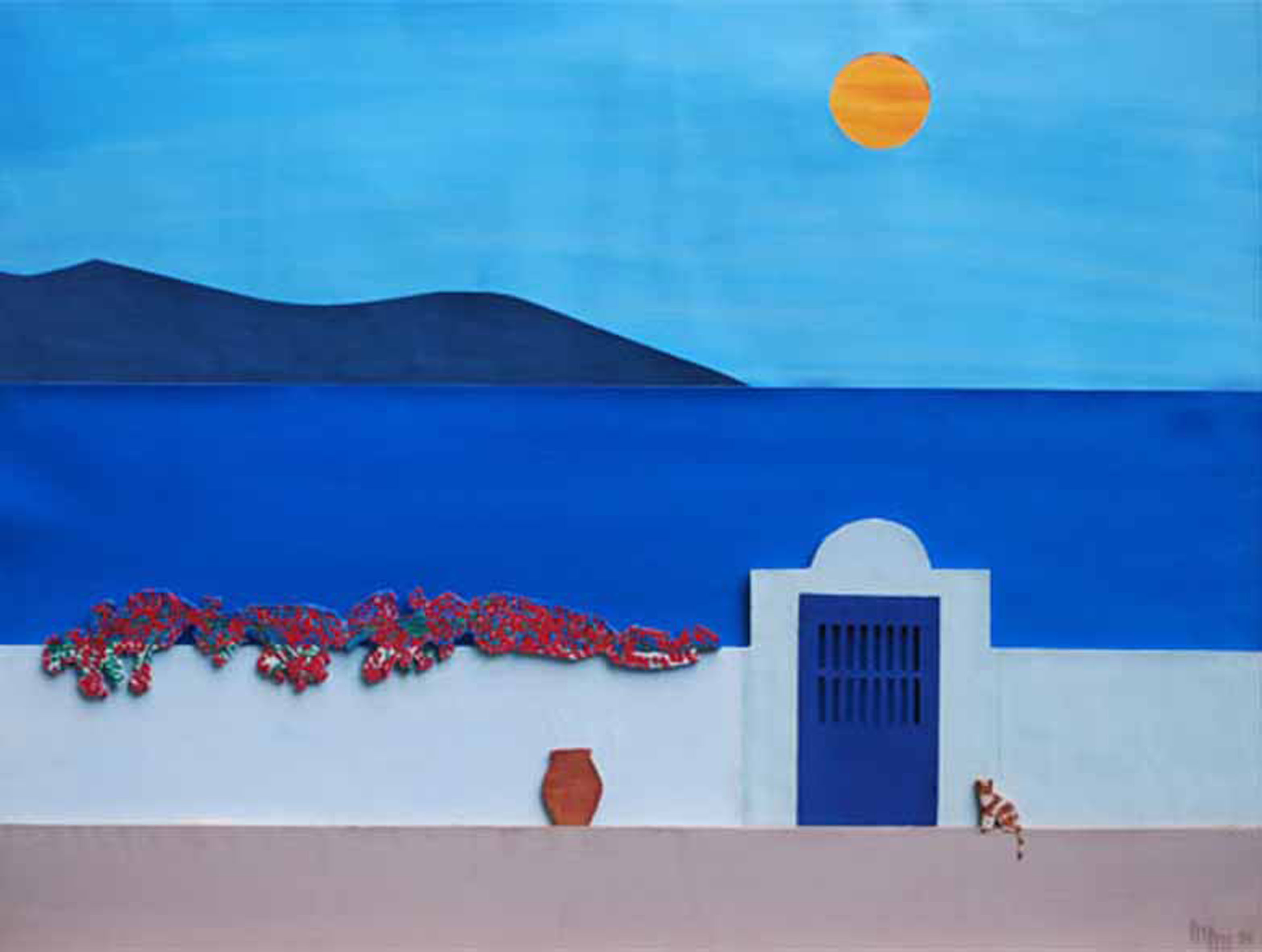 Gouache Collage Cycladen Eilanden Griekse Mykonos