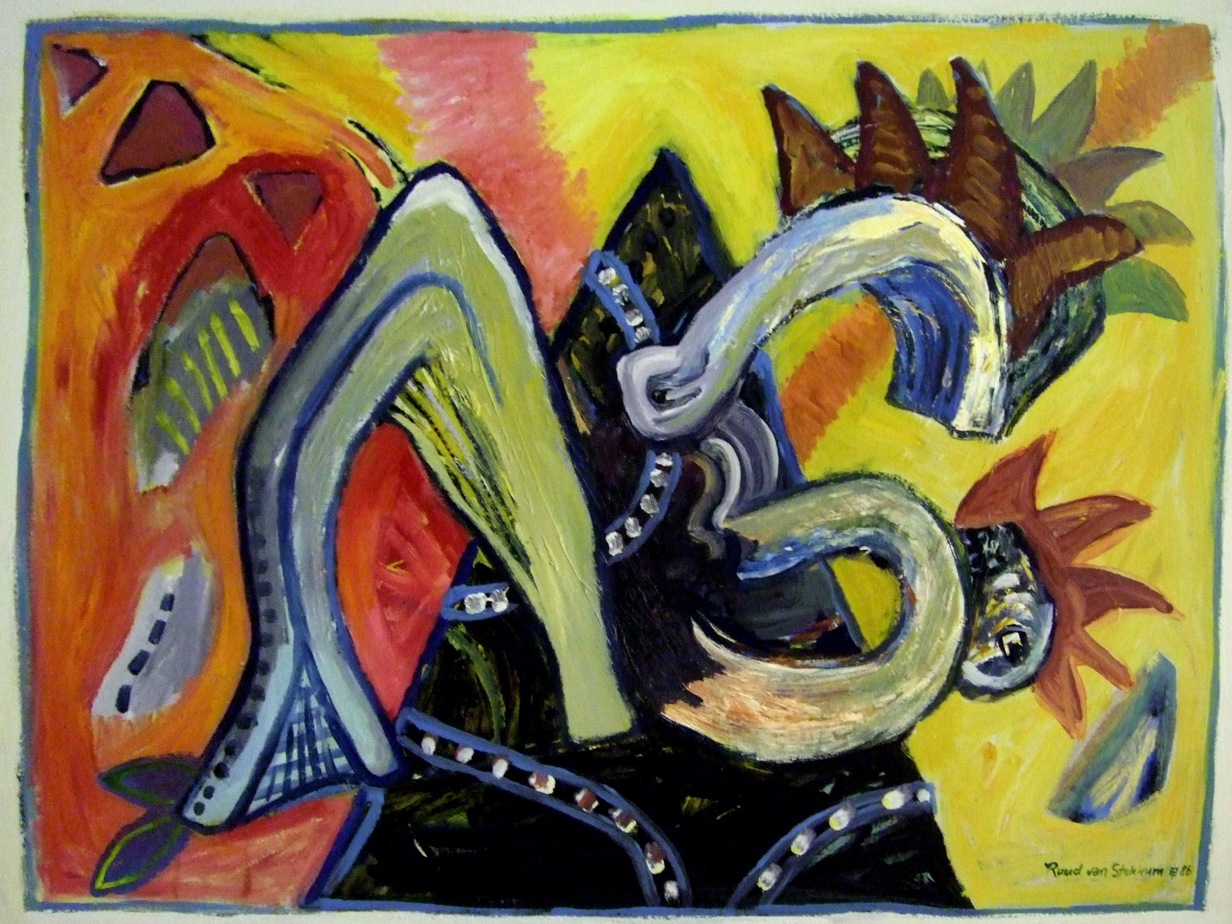 Mijn werk heeft vaak een surrealistische inslag. Ik hou ervan om beelden te maken waar veel in te zien is, qua voorstelling, qua kleuren en vormen en het resultaat moet de verbeelding aan het werk kunnen zetten. Het werk gaat over alledaagse dingen, uiteenlopende gedachten over het menselijk handelen en denken, in tekortkomingen, fantasieën, mythologieën, absurditeiten, poëzie, humor, geschiedenis, wetenschap, natuur en cultuur. Het eindresultaat is altijd een verrassing voor mijzelf en zo hoort het ook. Een deel van mijn werk bestaat uit wat ik DIGIGRAFIEKEN noem: Digitale collages waarin ik gebruik maak van fragmenten uit al mijn tekeningen, schilderijen en etsen en linosneden om een hele nieuwe wereld te creëren.