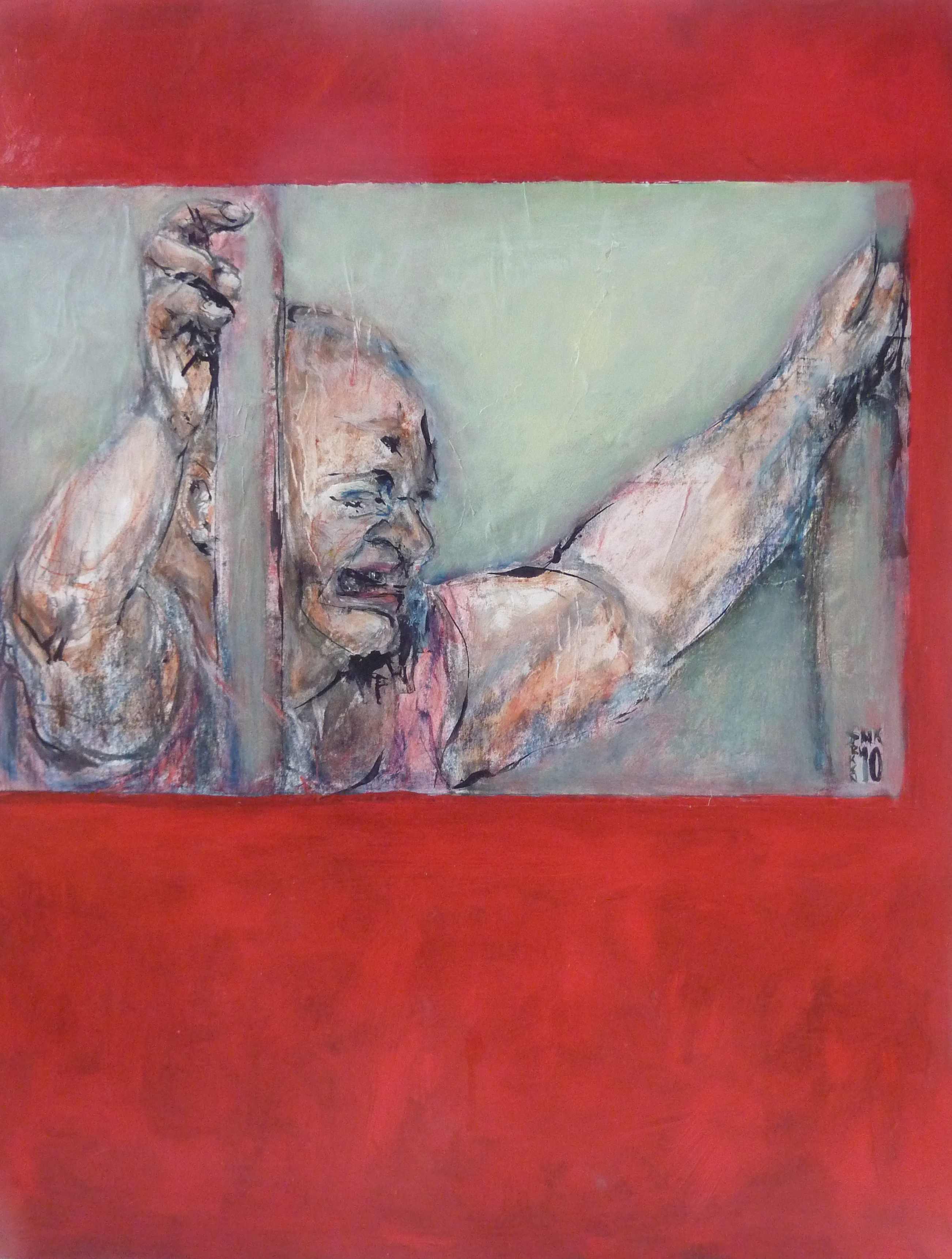 Schilderij Rood Vrouw Woman Gevangen Painting Mens Red Angst Human Fear Prison