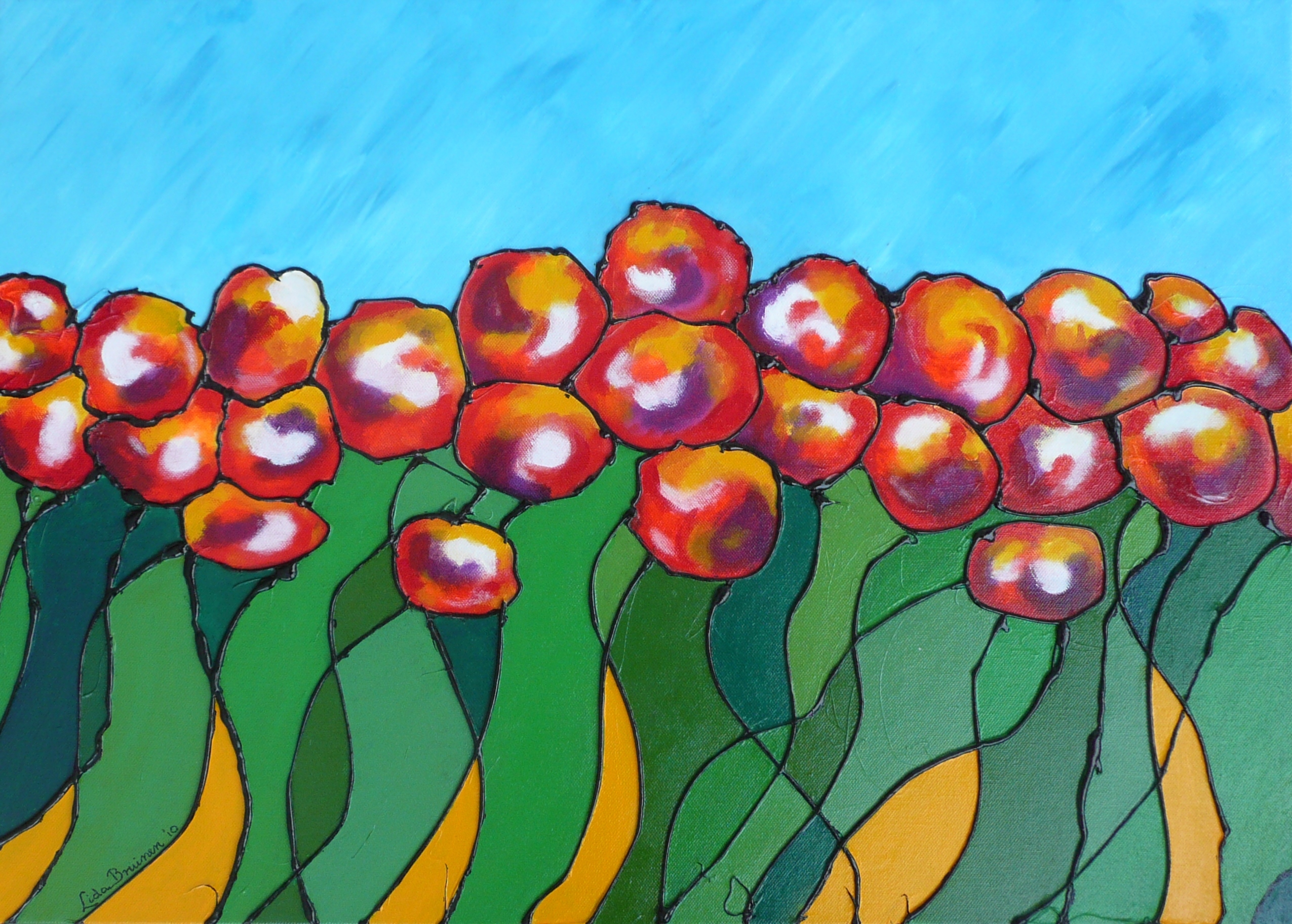 Acryl Flowers Structuur Bloem Bloemen Tulpen Roos Rozen Rood Bloemenveld Zomer Schilderij