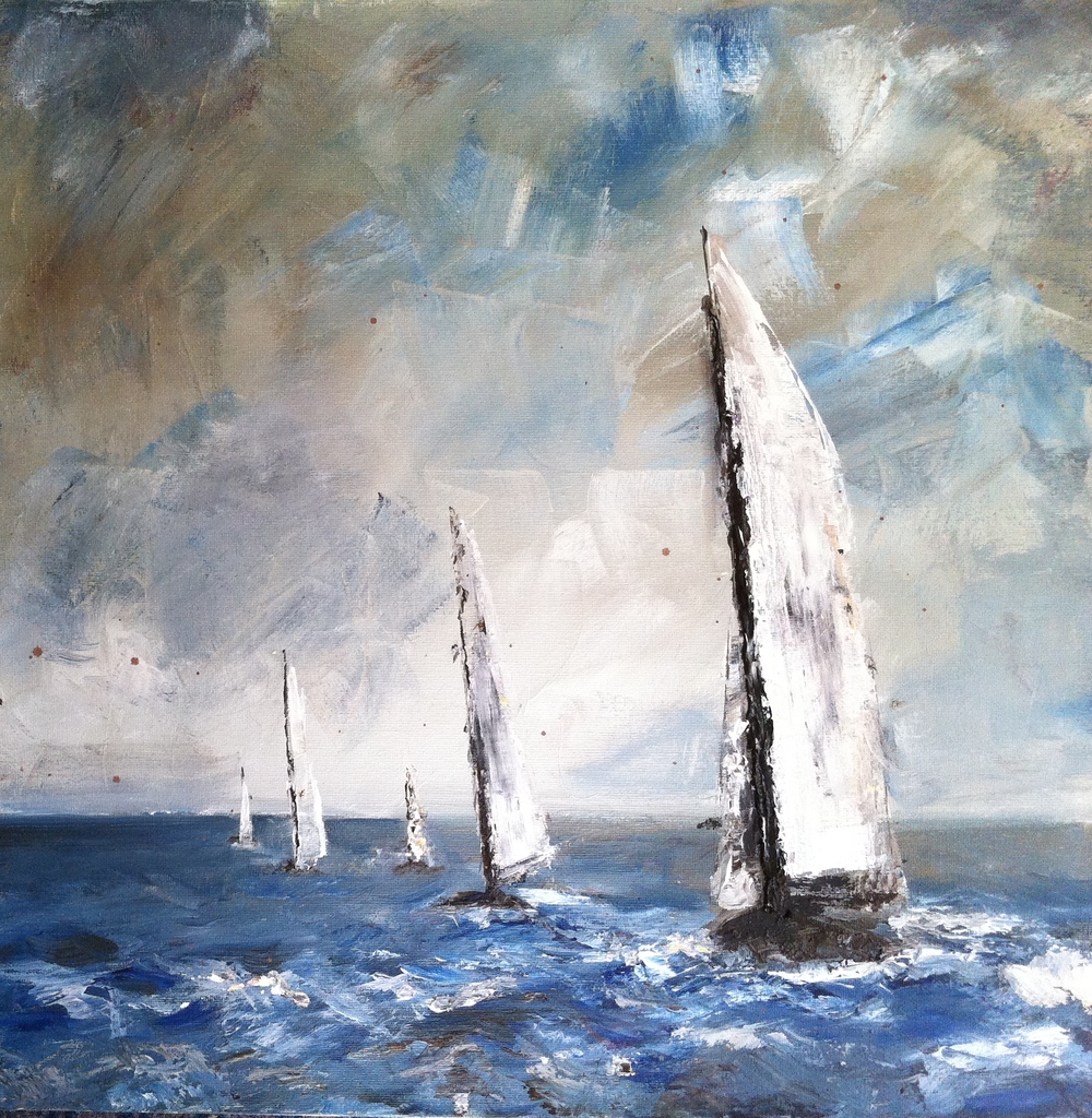Met messen geschilderd. Zeilen. Lucht water ruimte zee. De wind door je hoofd.