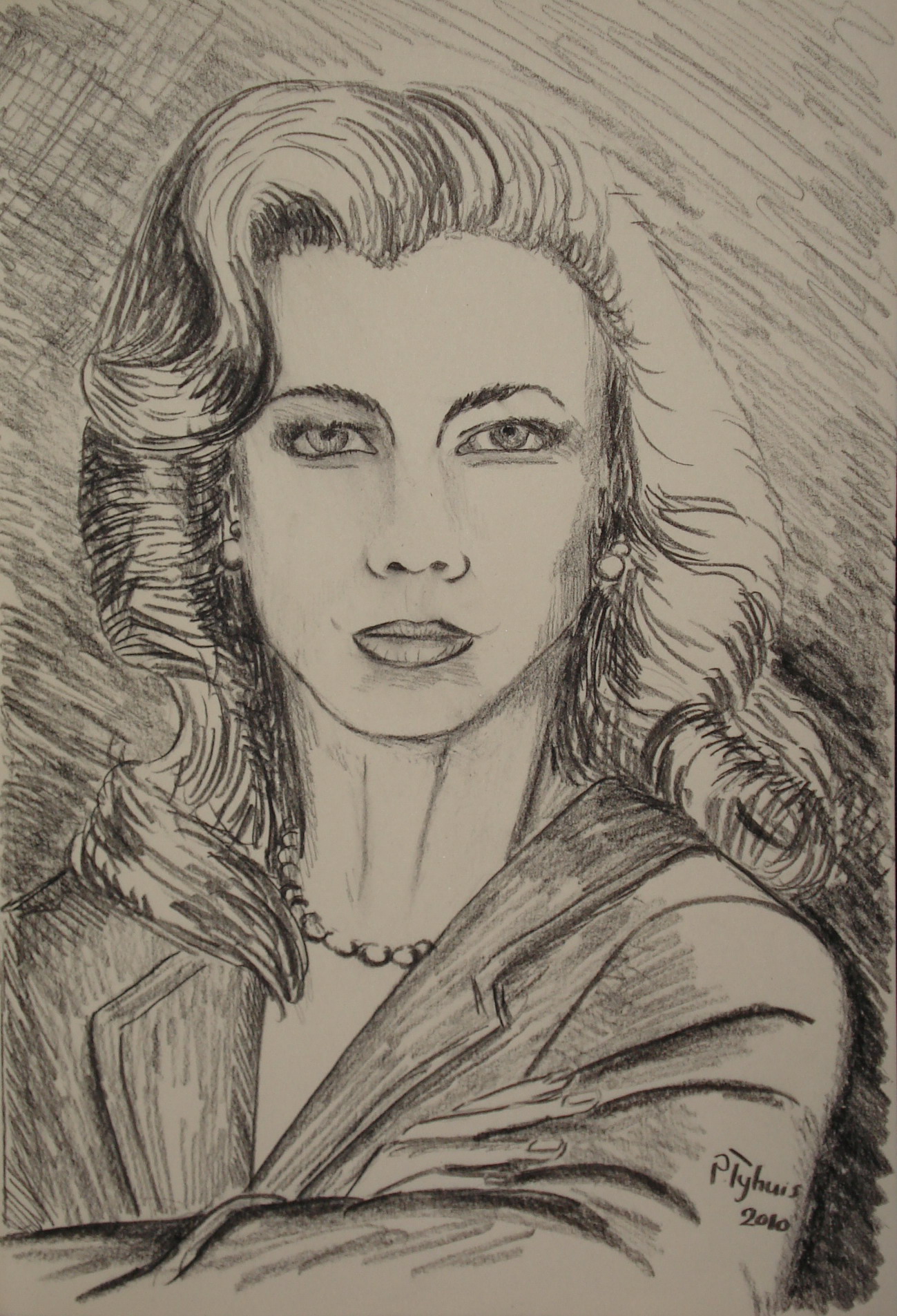 Vrouw Portret Potlood Woman Portrait Conte Pencil