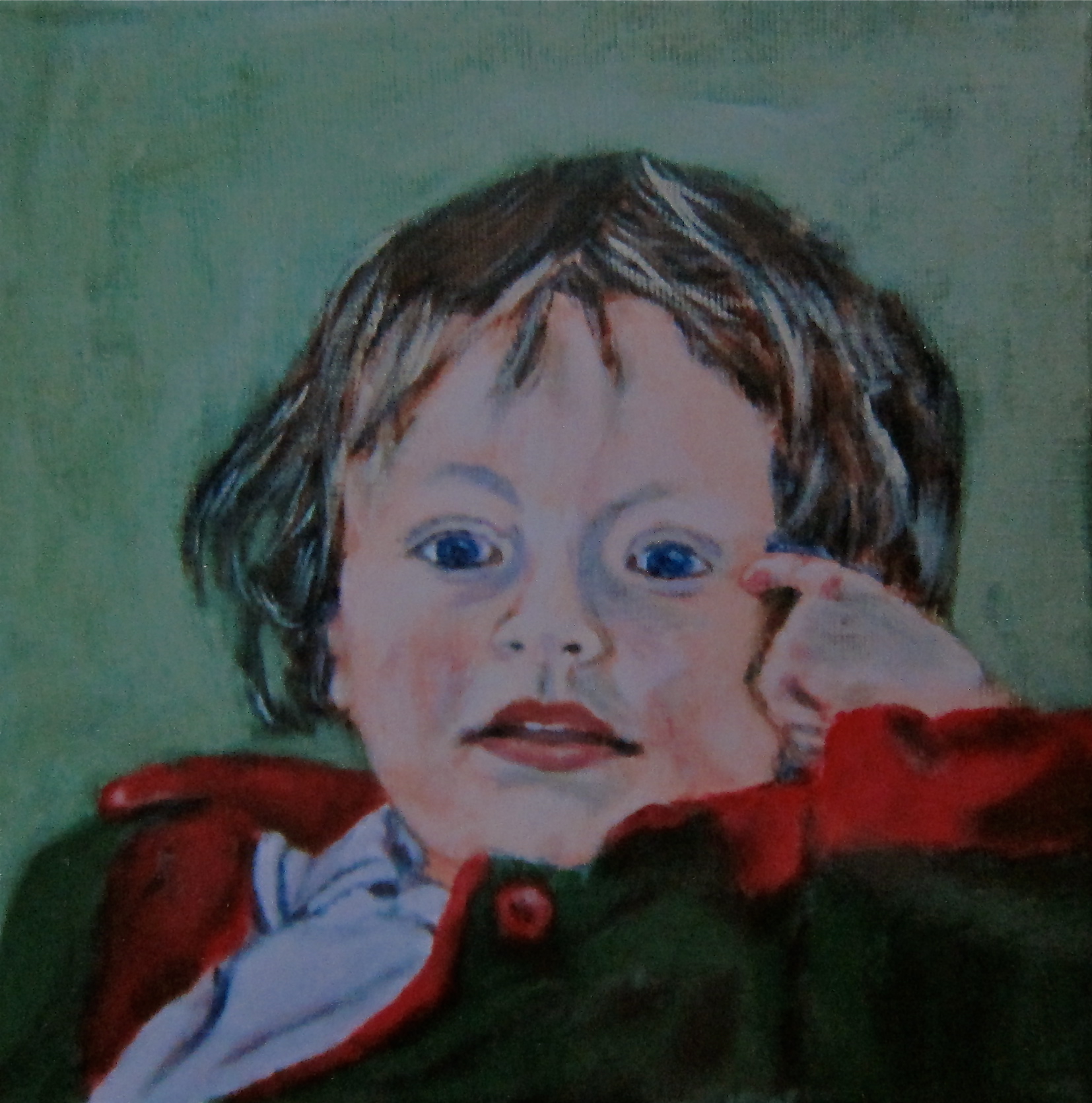Hand Peinzend Meisje Rood Groen Kind Gezicht