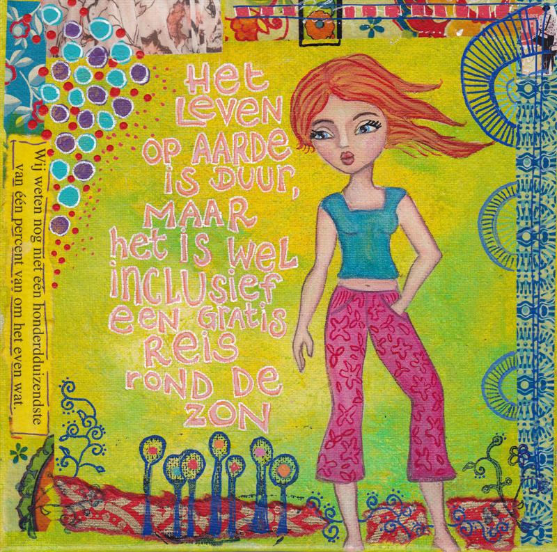 Schilderij Vrouwen Mixed Media Gemengde Kleurrijk Painting Women Technieken Collage Meisjes Girls Colorful Spreuken Quotes Sayings