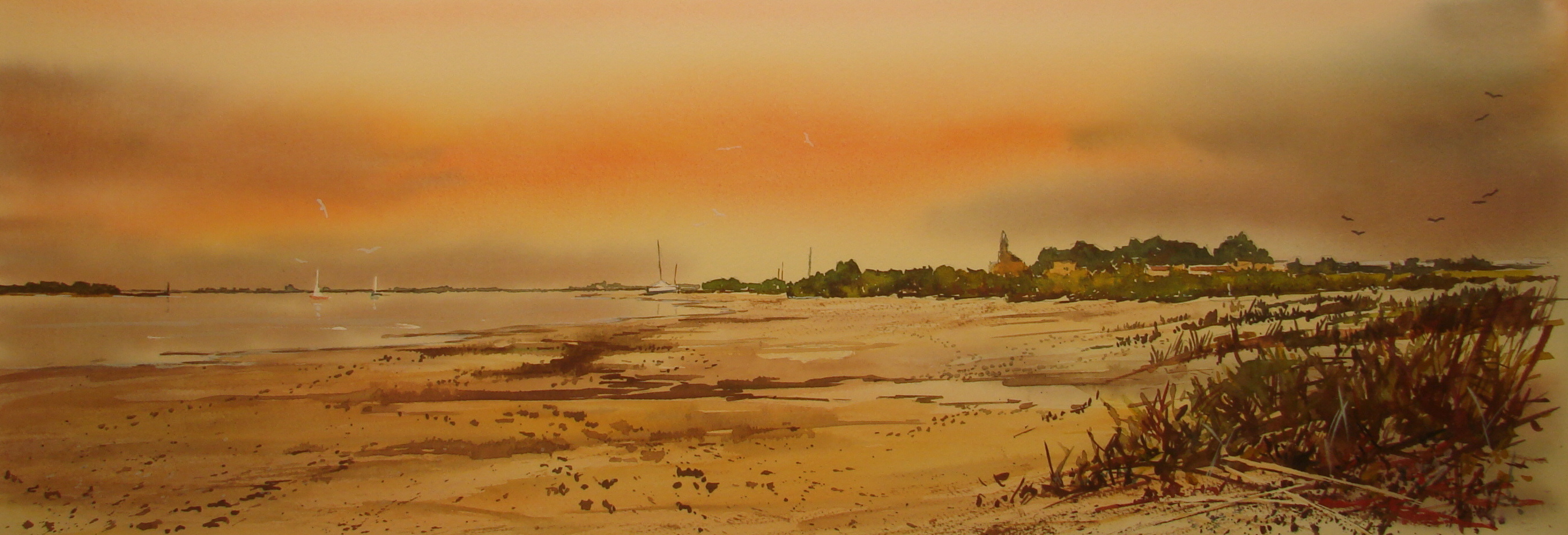 Realistische aquarellen en olieverf schilderijen van Hollands landschap, met altijd expressieve luchten boven de lage horizon zich spiegelend in de waterrijke polder. Ook werken uit de Franse Morvan en van de Oostelijke Algarve in Portugal.
