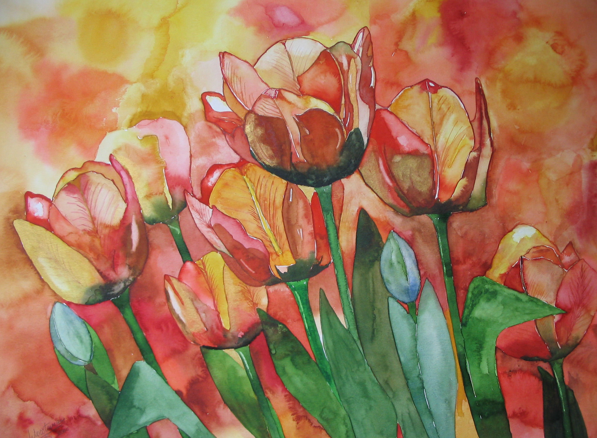 Oranje Tulp Tulpen Bloemen Aquarel Kunst Bloem Holland Tulip Orange Watercolour Tulips