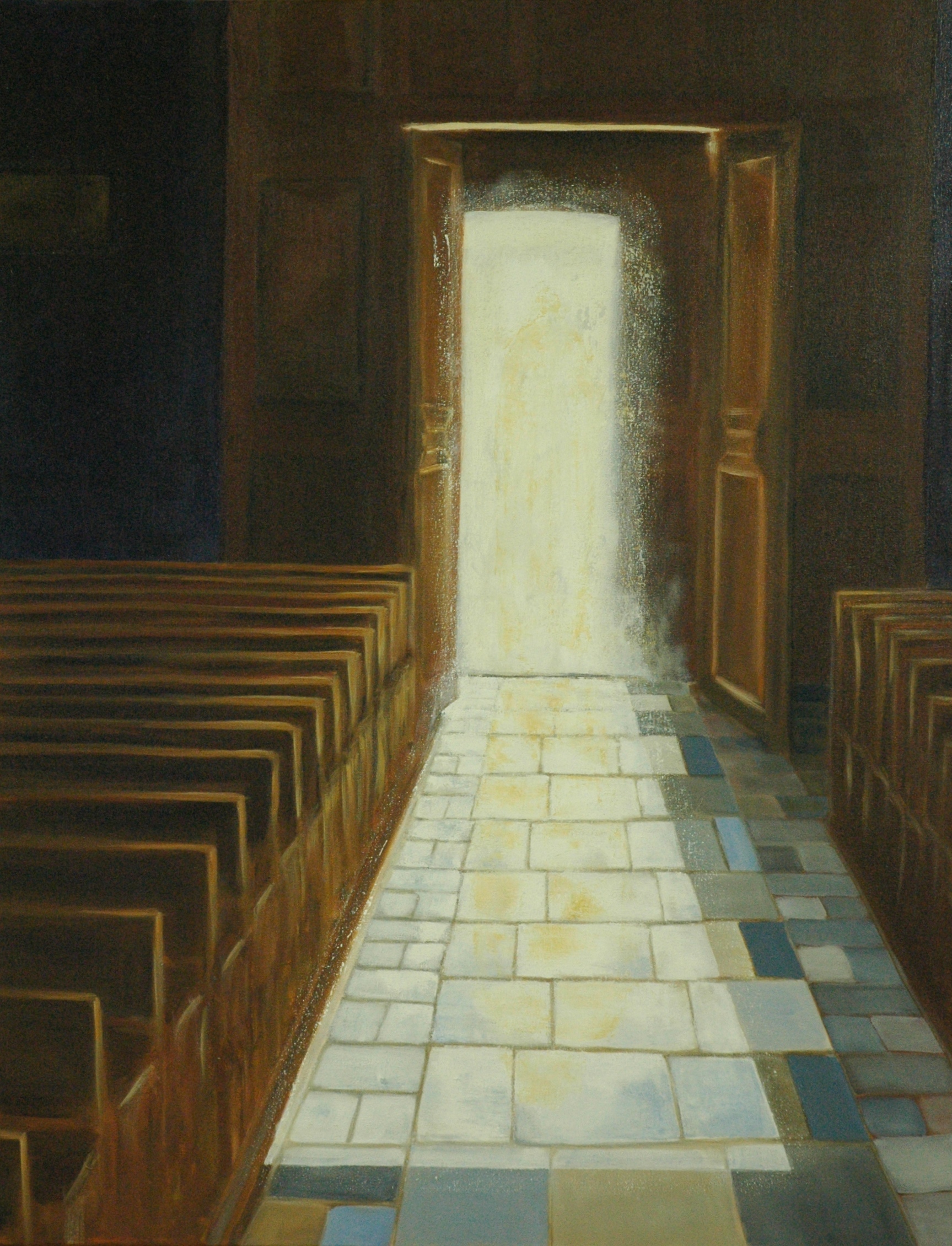 kerkinterieur met binnenvallend licht