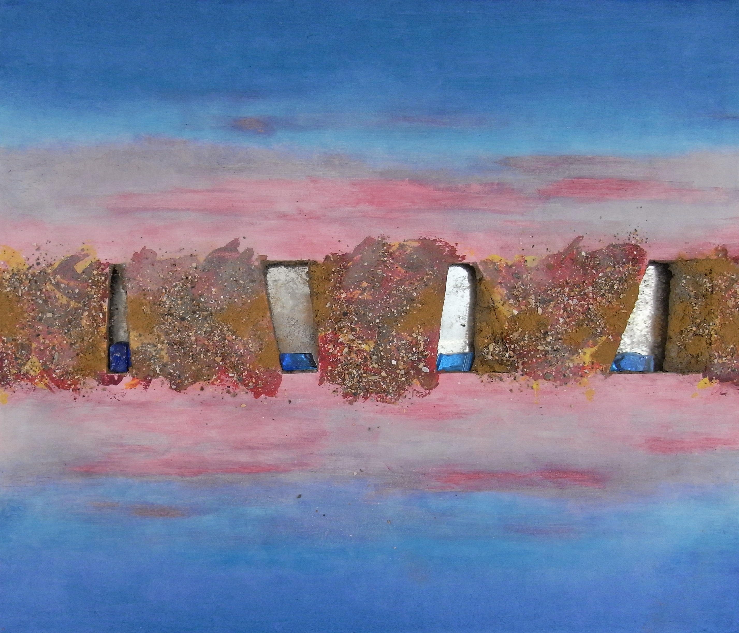 Zee Blauw Glas Water Licht Natuur Collage Spiegel Spiegeling Assemblage Horizon Wandobject Sjamanisme Assembly