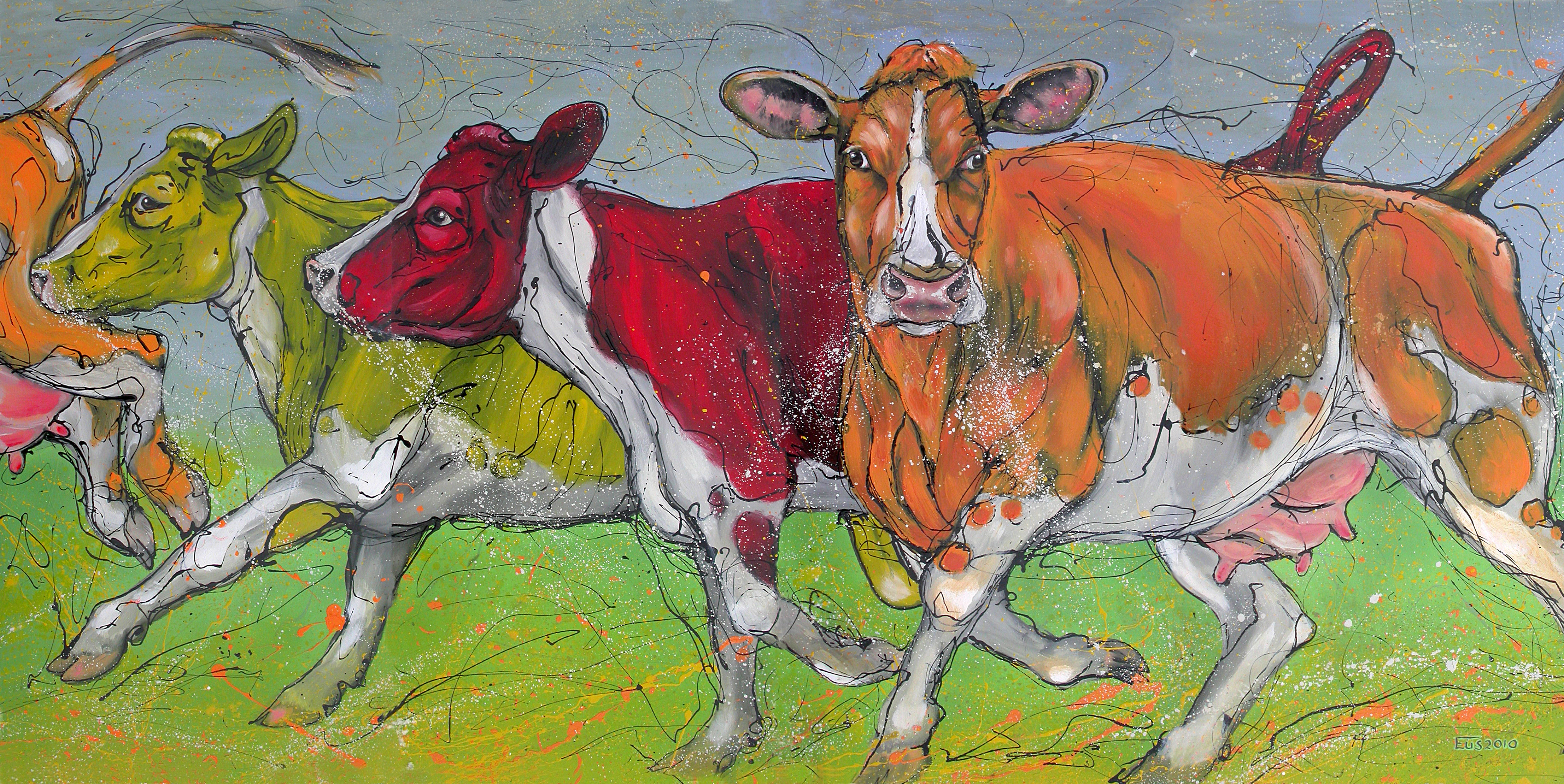 Dieren Koe Koeien Cow Cows Farm Animals Coloured Lost Erlinde Ufkes Stephanus Gekleurde Landleven Countrylife Ladies Boederij Cowpaintings Koeienschilderijen