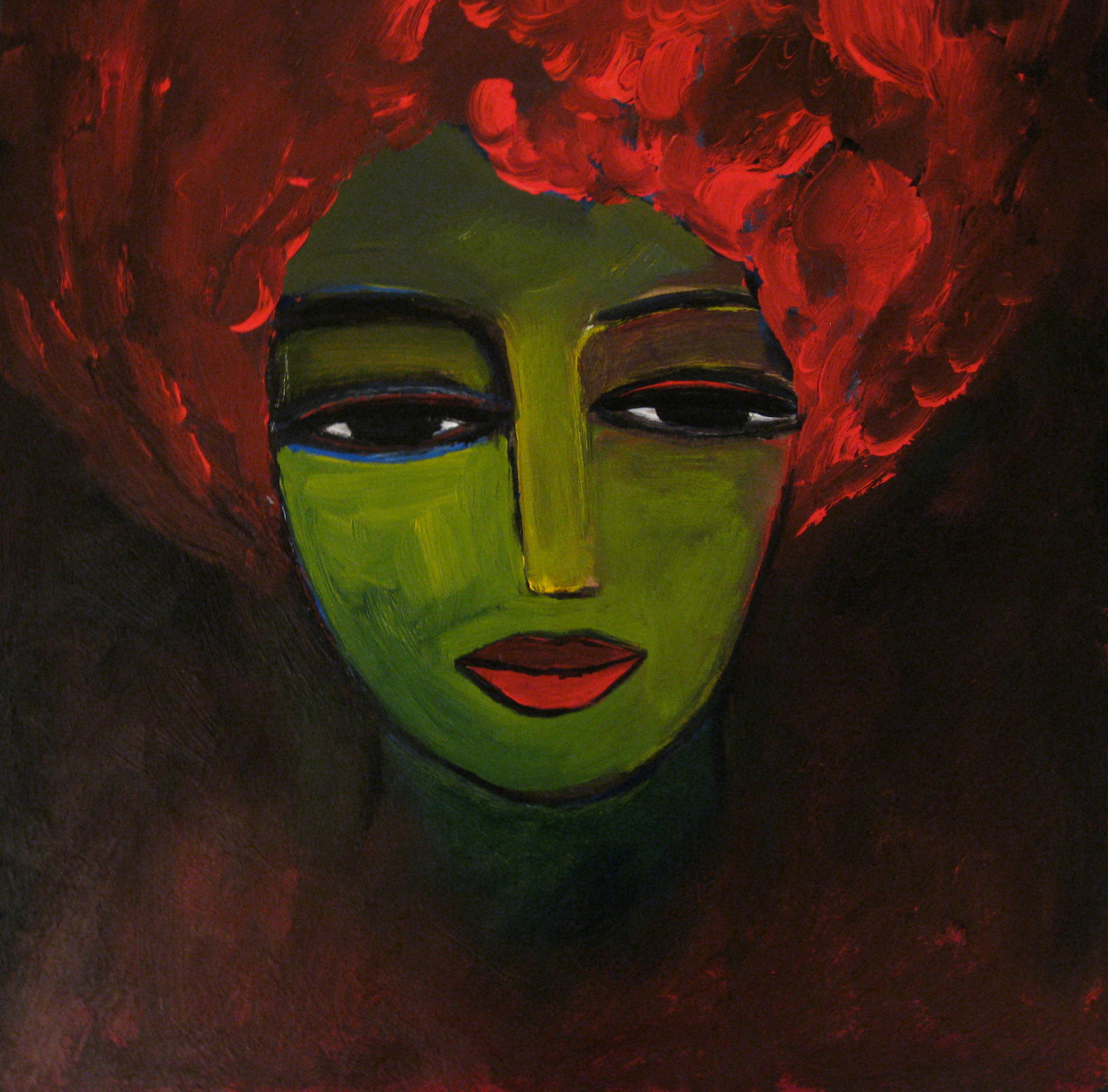 Schilderij Rood Groen Portret Portrait Painting Red Green