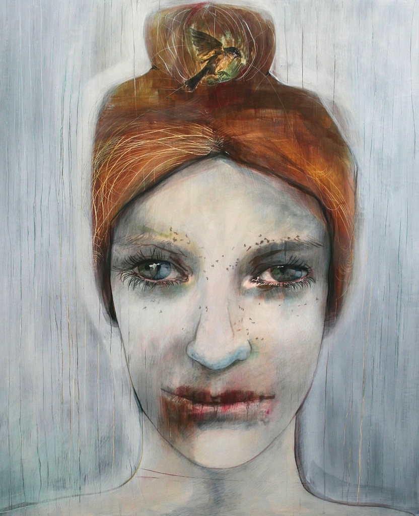 Werken van wol en acrylhars. Zowel zacht en aaibaar als confronterend.